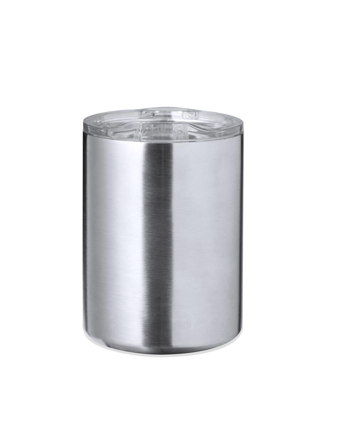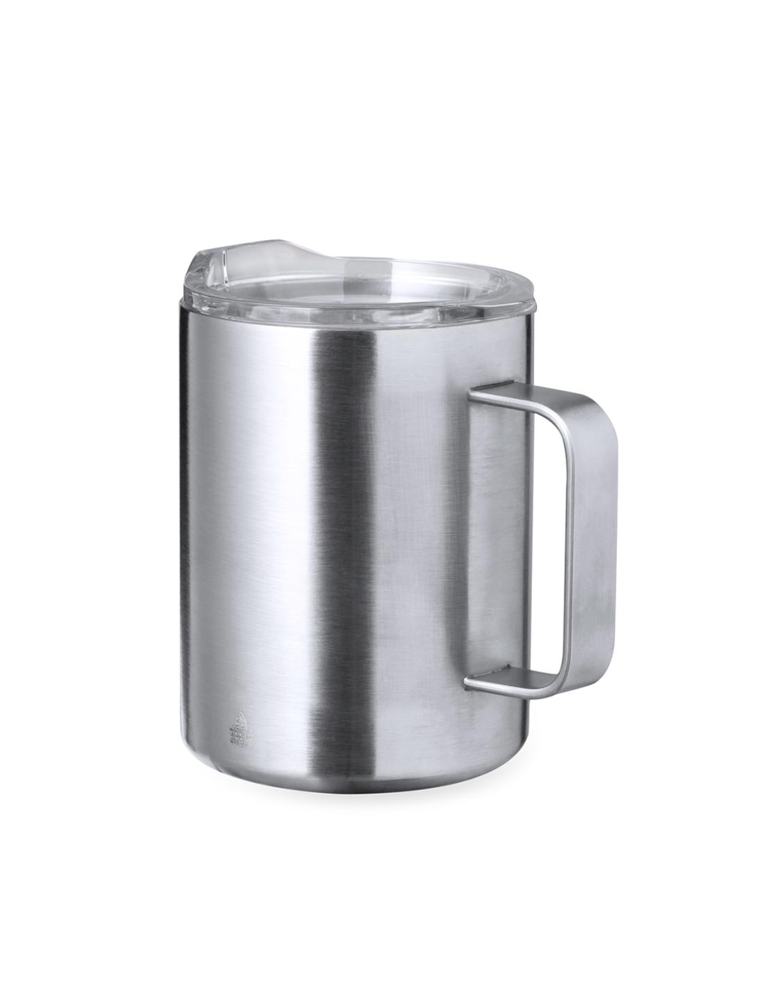 Taza térmica de sobremesa fabricado con acero inox reciclado de doble pared y 370 ml de capacidad. Con dosificador abrefácil en tapa, libre de BPA, y acabado plata. Con logotipo Acero Inox Reciclado. Presentada en caja individual de diseño kraft.El acero es uno de los materiales más demandados y que puede encontrarse casi en todas partes, desde productos de uso diario a grandes construcciones. Con innumerables propiedades, entre las que cabe destacar la durabilidad y su alto grado de reutilización, convirtiéndolo en una alternativa muy valorada en soluciones de sostenibilidad. Debidamente tratado, permite obtener nuevos recursos de infinita utilización.