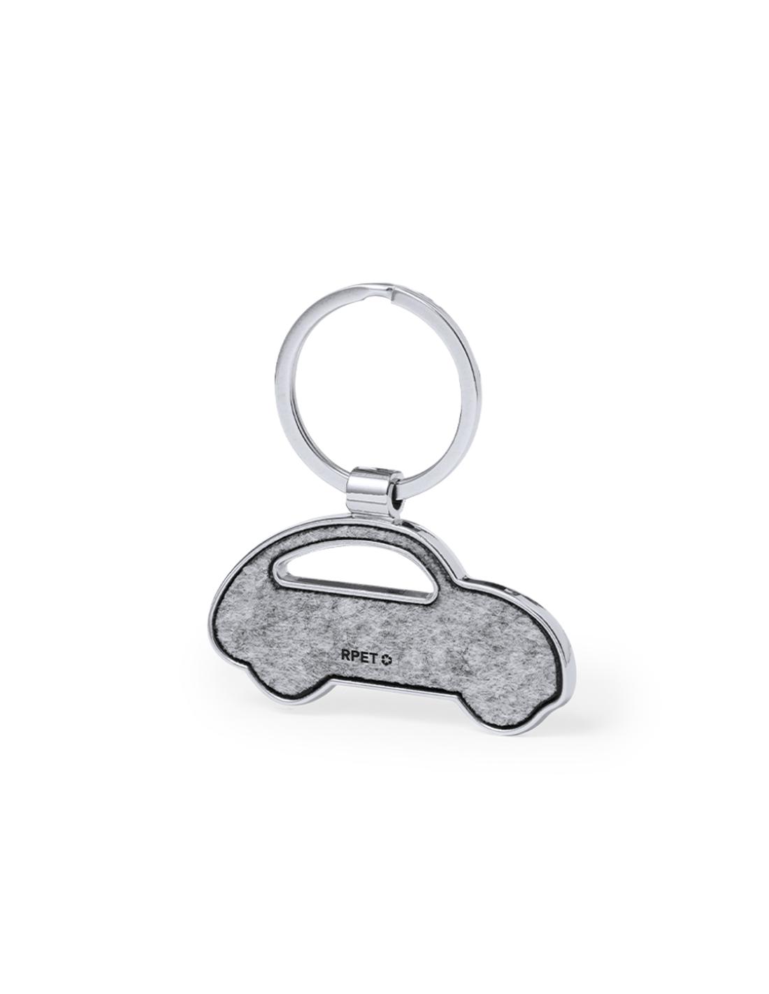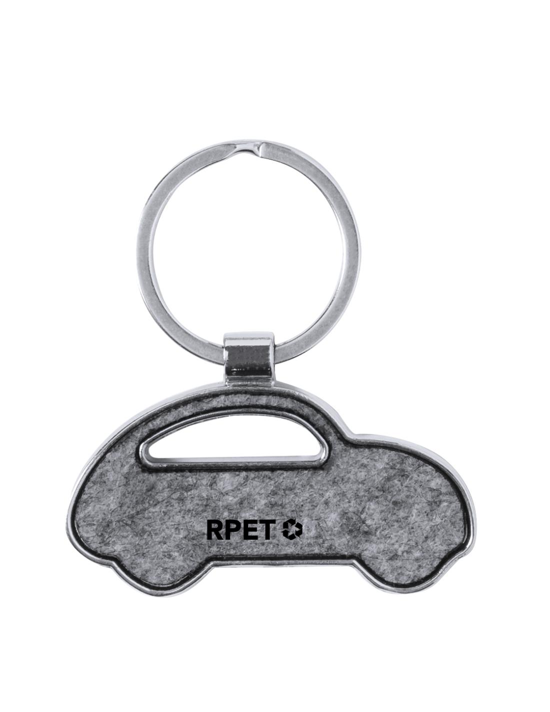 Llavero fabricado en combinación de base metálica y caras en fieltro RPET. Disponible en diseño circular; en diseño rectangular con bordes redondeados; y en formas de casa, y coche. Con amplia superficie de marcaje y logotipo RPET en el frontal. Presentado en una bolsa individual de papel reciclado. El fieltro RPET es fruto de la combinación del proceso de reciclaje de materiales plásticos junto con la técnica milenaria de fabricación del fieltro, dando como resultado un material de eco-tendencia que, además de ser de origen reciclado, también se convierte en reciclable.