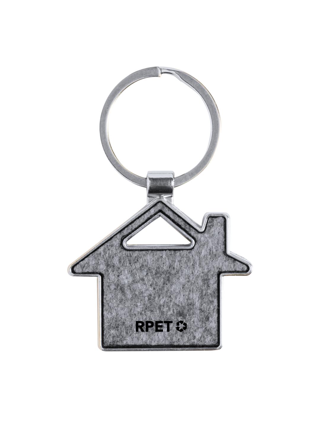 Llavero fabricado en combinación de base metálica y caras en fieltro RPET. Disponible en diseño circular; en diseño rectangular con bordes redondeados; y en formas de casa, y coche. Con amplia superficie de marcaje y logotipo RPET en el frontal. Presentado en una bolsa individual de papel reciclado. El fieltro RPET es fruto de la combinación del proceso de reciclaje de materiales plásticos junto con la técnica milenaria de fabricación del fieltro, dando como resultado un material de eco-tendencia que, además de ser de origen reciclado, también se convierte en reciclable.