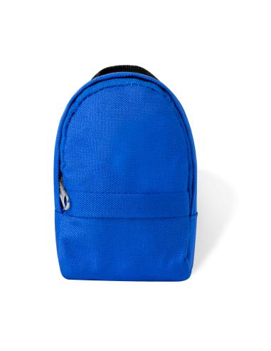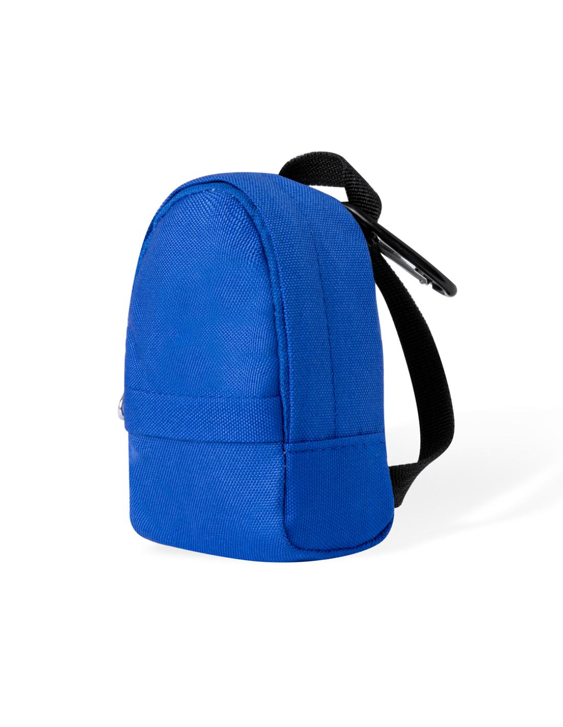 Original monedero en forma de mochila, con bolsillo de cierre de cremallera, cintas y con práctico mosquetón para poder enganchar fácilmente. Fabricado en resistente poliéster 600D y disponible en varios colores.