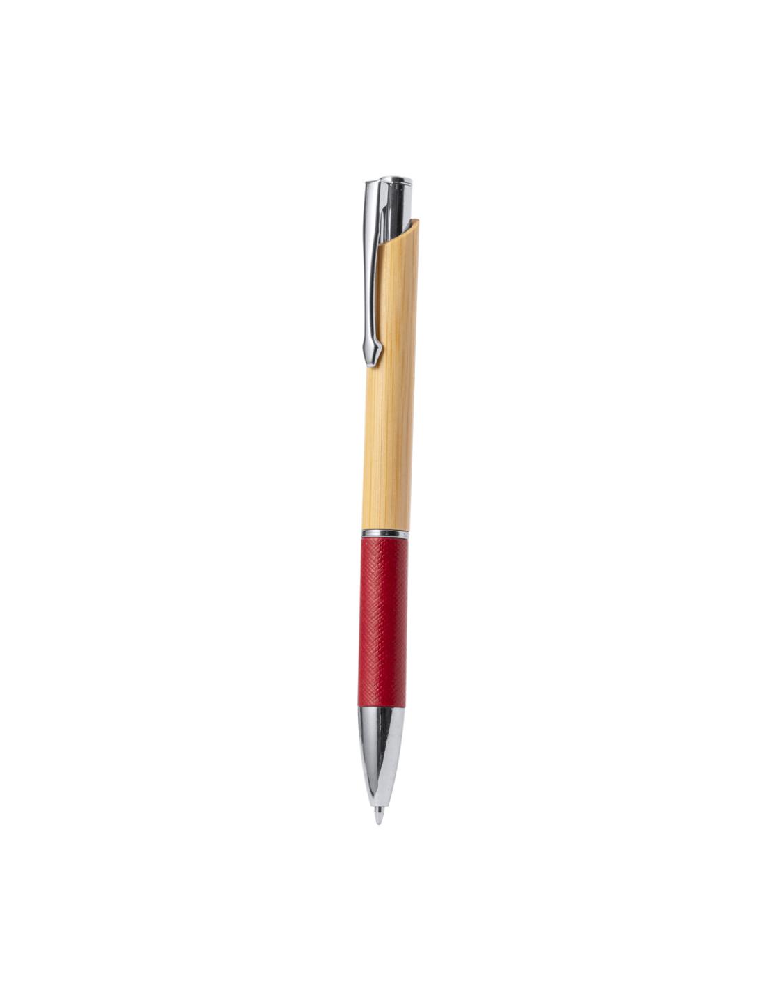 Bolígrafo con cuerpo en bambú y papel reciclado. Caña fabricada en suave bambú con empuñadura hecha en cartón reciclado con textura y en variados colores. Clip metálico y accesorios en cromado. De mecanismo pulsador, de cartucho jumbo y con tinta azul.Elaborado con elementos vegetales para así fomentar la utilización de materias primas naturales y reducir las emisiones contaminantes.