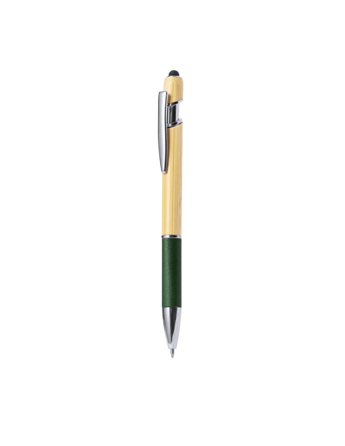 Bolígrafo puntero con cuerpo en bambú y papel reciclado. Caña fabricada en suave bambú con empuñadura hecha en cartón reciclado con textura y en variados colores. En la parte superior tiene un puntero negro. Clip metálico y accesorios en cromado. De mecanismo pulsador y en tinta azul.Elaborado con elementos vegetales para así fomentar la utilización de materias primas naturales y reducir las emisiones contaminantes.