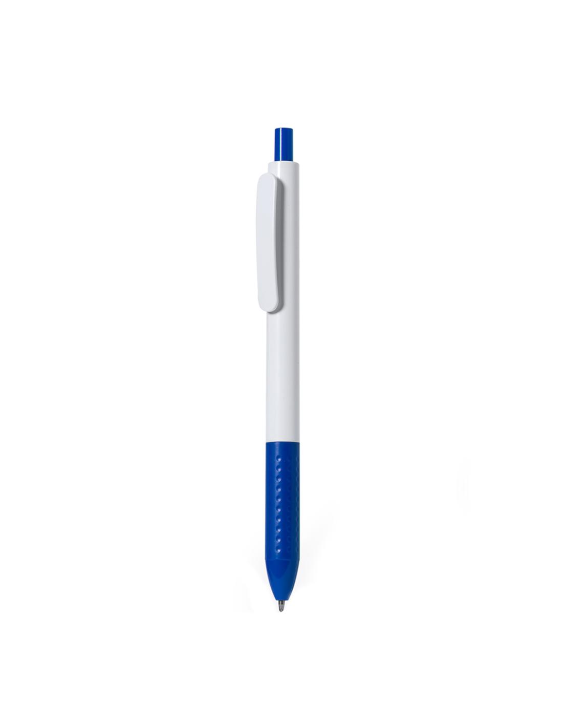 Bolígrafo de mecanismo pulsador en resistente ABS. Fabricado en elegante combinación de caña y clip de tono blanco. Con pulsador y empuñadura disponibles en una vibrante variedad de colores. En tinta azul.