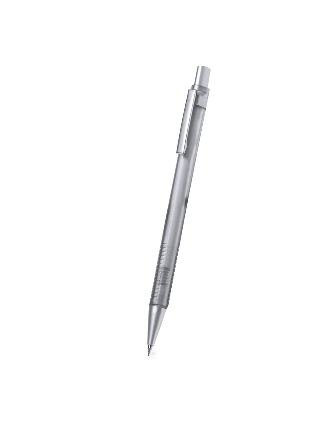 Elegante portaminas hecho en resistente ABS. Cuerpo en color gris translúcido y empuñadura a juego de tacto rugoso para un mejor agarre, con elementos cromados como botón, clip y punta. Con goma y minas incluidas de 0,7 mm.