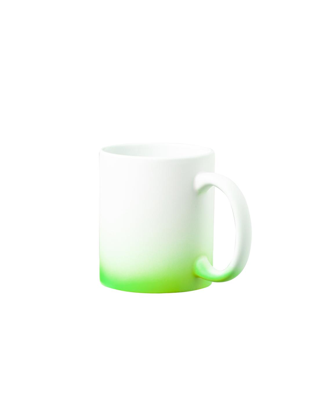 Taza de cerámica con 350 ml de capacidad y acabado mate. Especialmente diseñada para marcaje en sublimación. Disponible en diversos y llamativos colores degradados a blanco. Presentada en caja individual kraft.
