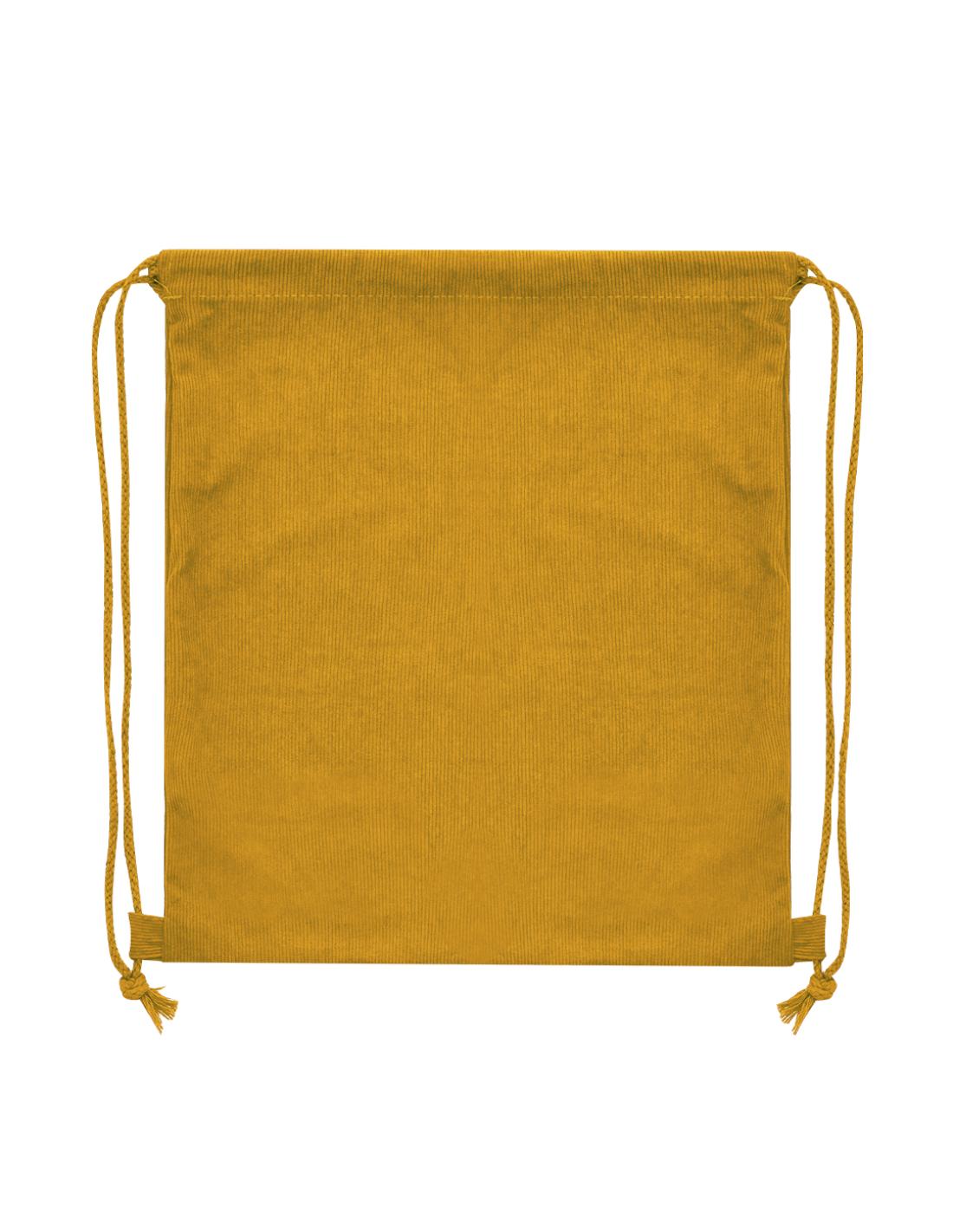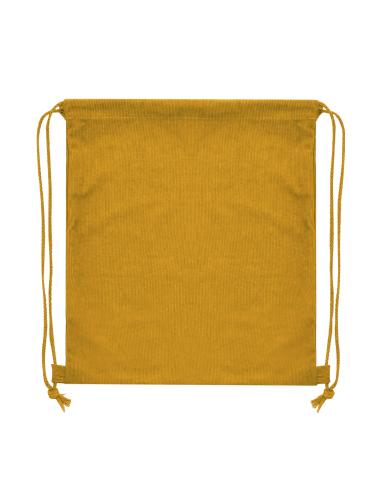 Mochila de cuerdas fabricada en resistente pana de poliéster. De acabado cosido, con cuerdas a juego y refuerzos laterales. Disponible en variada gama de colores.