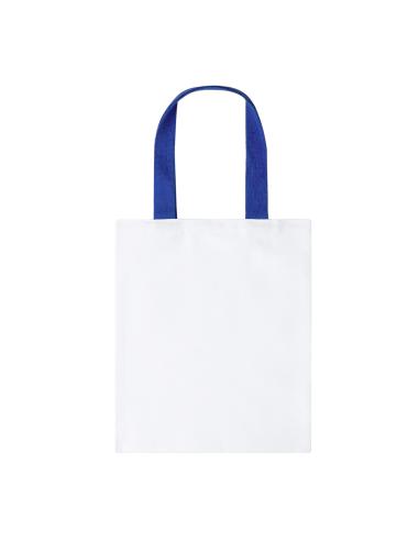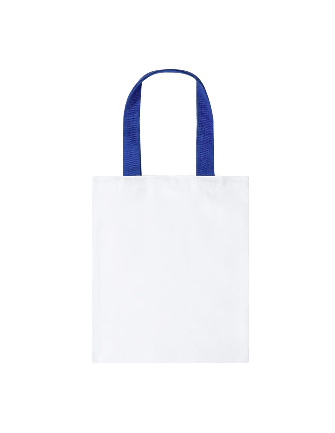 Bolsa de canvas de 230g/m2. En color blanco, con resistente acabado cosido y asas reforzadas en diferentes colores de 60cm de largo.