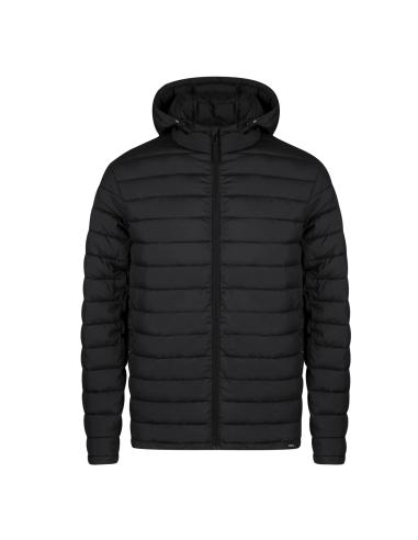Chaqueta unisex en cálido y suave material 100% RPET, con capucha ajustable mediante cintas elásticas. En material extra ligero efecto pluma, resistente al agua y cortavientos. Con acolchado interior, cremallera en cuello con tapeta y cinta en tirador, además de amplios bolsillos laterales con cremallera. Incluye práctica funda de transporte con cordón ajustable y etiqueta con logotipo RPET. Disponible en variada gama de colores y en tallas XS, S, M, L, XL, XXL.El material RPET se elabora a partir de plástico reciclado, para así fomentar la reutilización de residuos plásticos y ayudar a la sostenibilidad del planeta.