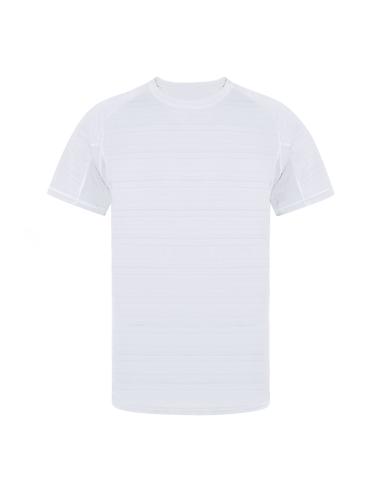 Camiseta técnica unisex con original diseño a rayas, en combinación con tejido transpirable microperforado en axilas y laterales. Confeccionada en suave material 100% poliéster de 135g/m2, siendo una camiseta muy cómoda, ligera y transpirable; ideal para la práctica de deporte y también como prenda de uso diario. De corte moderno, manga ranglán y cuello redondo, con doble costura en dobladillo y mangas de doble tejido para una mayor durabilidad y resistencia al uso intensivo. Disponible en tallas XS, S, M, L, XL y XXL.