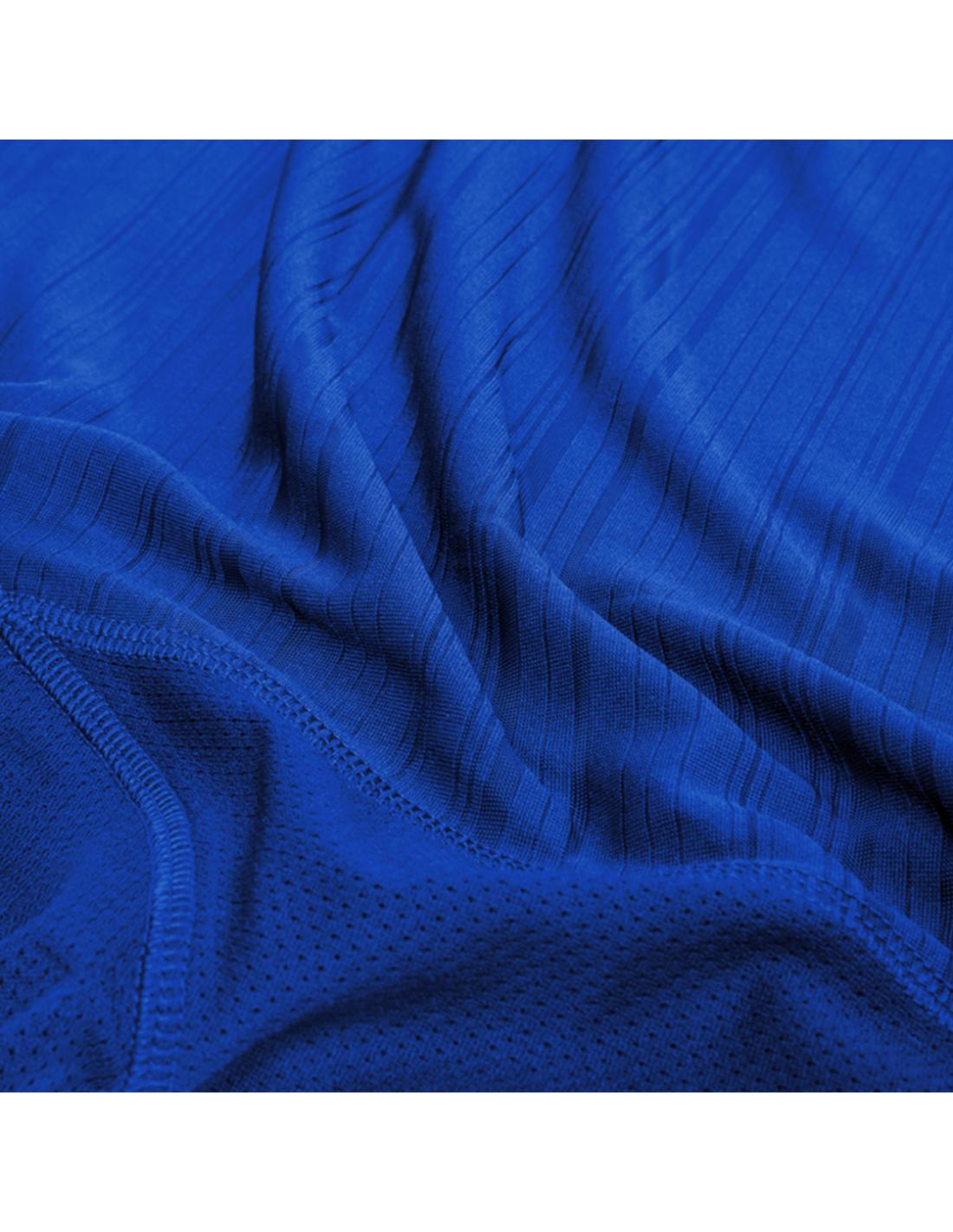 Camiseta técnica unisex con original diseño a rayas, en combinación con tejido transpirable microperforado en axilas y laterales. Confeccionada en suave material 100% poliéster de 135g/m2, siendo una camiseta muy cómoda, ligera y transpirable; ideal para la práctica de deporte y también como prenda de uso diario. De corte moderno, manga ranglán y cuello redondo, con doble costura en dobladillo y mangas de doble tejido para una mayor durabilidad y resistencia al uso intensivo. Disponible en tallas XS, S, M, L, XL y XXL.