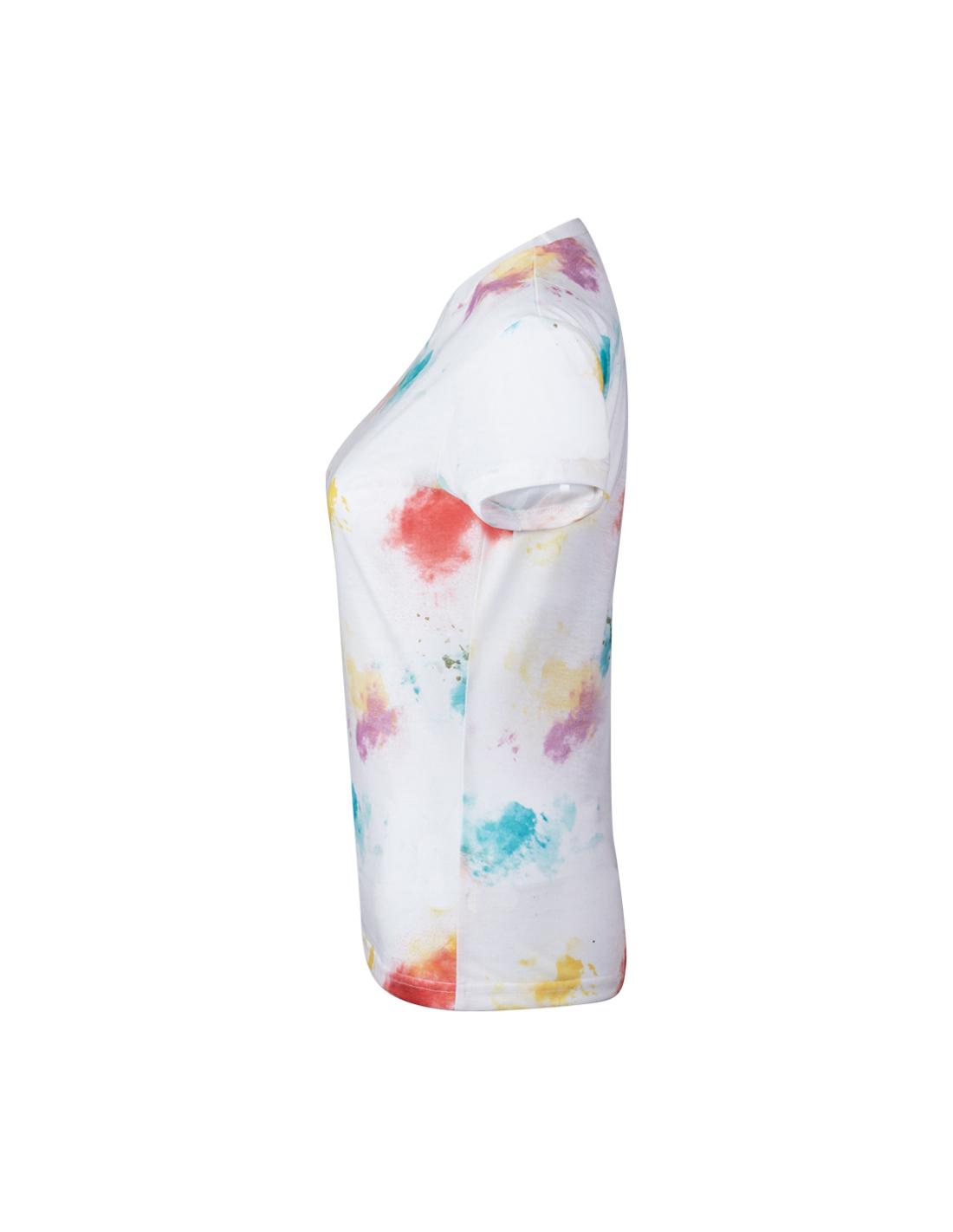 Camiseta para mujer en material 100% poliéster transpirable de 160g/m2 con textura de algodón. Con cuello redondo y atrevido diseño con estampados inspirado en una paleta de pinturas. Disponible en tallas S, M, L, XL.