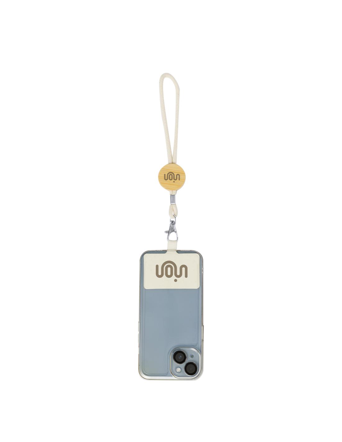 Original pulsera portamóvil en suave algodón, adaptable a todo tipo de muñecas. Con accesorio de transporte para situar entre la funda y el smartphone. Pieza central de bambú para personalización, especial para grabado en láser. Presentado individualmente en bolsa de papel reciclado.Materiales como el bambú fomentan la utilización de materias primas naturales, reduciendo las emisiones contaminantes. Proviene de una planta de gran resistencia y versatilidad, con crecimiento y regeneración rápidos, siendo una excelente alternativa al uso de madera tradicional.