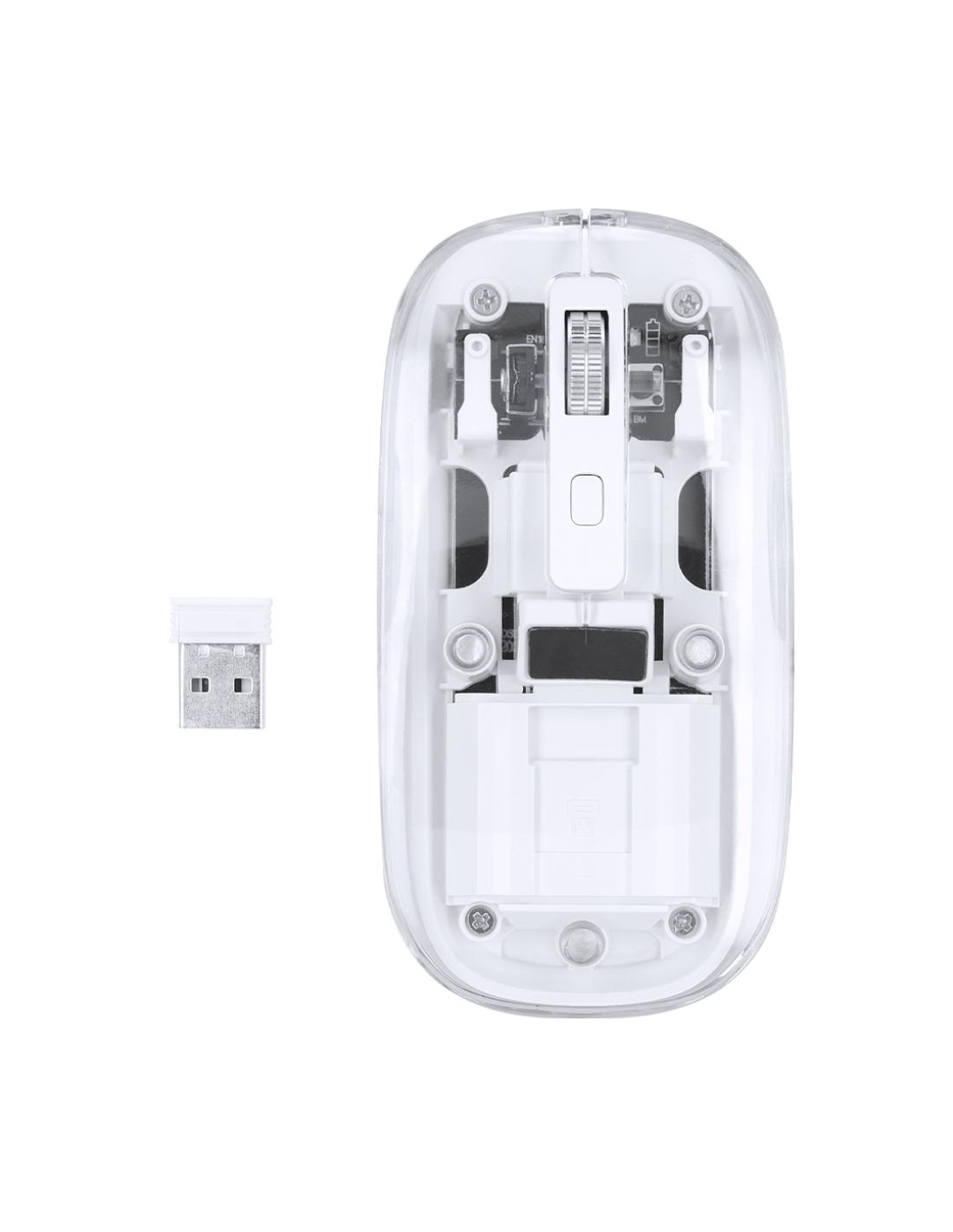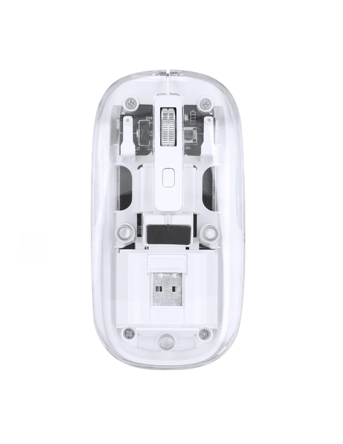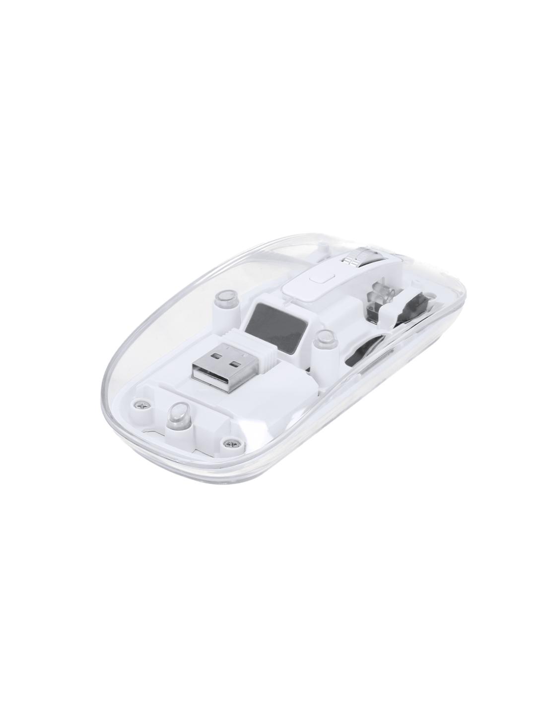 Ratón óptico inalámbrico de original diseño, con cuerpo transparente que permite ver los componentes internos del dispositivo. Con batería integrada de 300 mAh y con puerto de carga Tipo C (cable incluido). Incluye botón DPI, con conexión “plug and play” por USB y viene presentado en caja individual de diseño kraft.