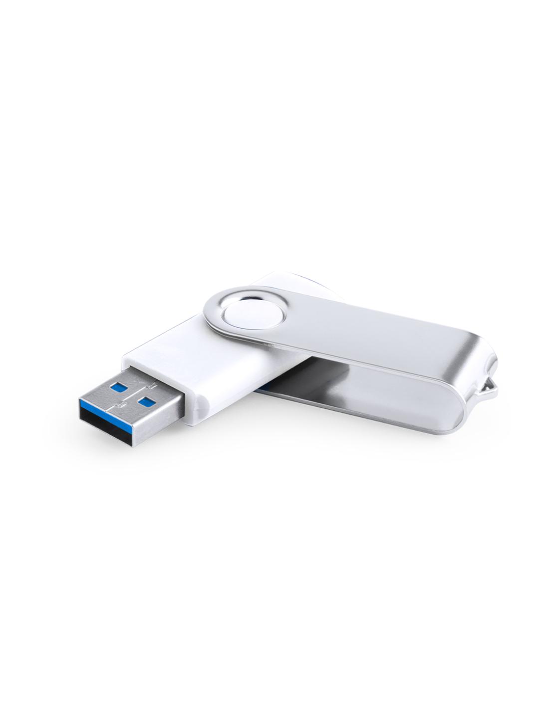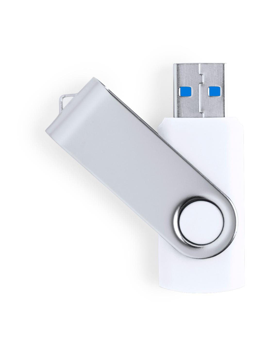 Memoria USB 3.0 de 16GB de capacidad. Con clip metálico y cuerpo de suave acabado en color blanco. Presentada en estuche individual.