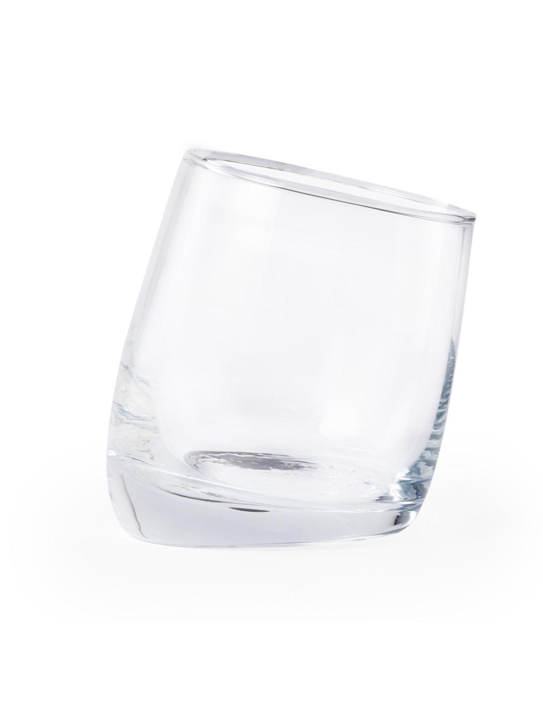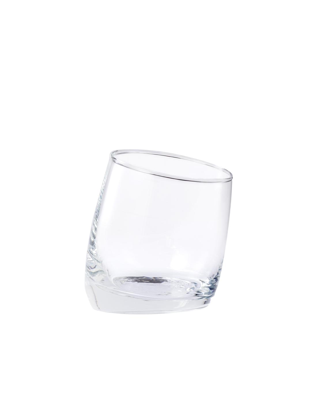 Original vaso de cristal de 320ml de capacidad. Con atractivo diseño inclinado y presentado en caja individual de diseño kraft.
