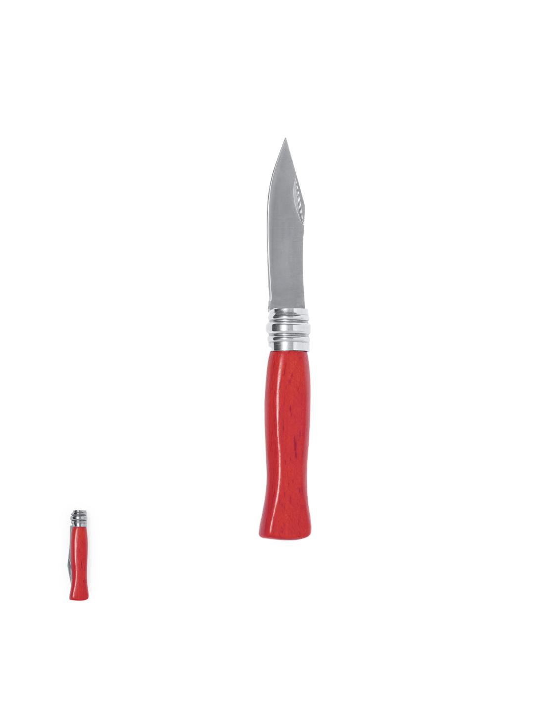 Navaja fabricada en resistente acero inox, con mango ergonómico fabricado en madera natural lacada y con anilla metálica de bloqueo. La aleación de la hoja garantiza resistencia a la corrosión y abrasión, siendo ideal para el uso frecuente con materiales duros. La hoja es de Tipo Clip, que se caracteriza por su forma puntiaguda y destaca por su versatilidad a la hora de usarla. Disponible en variada gama de colores y presentada individualmente en caja blanca.