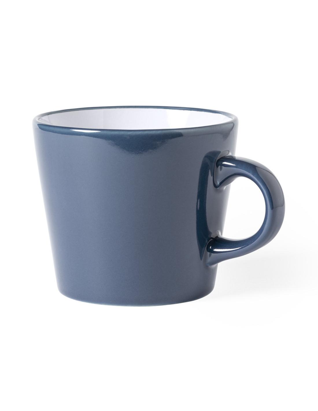 Taza de cerámica de 350ml de capacidad en combinación de interior en color blanco y exterior en variada gama de colores. Presentada en caja individual acabado kraft.