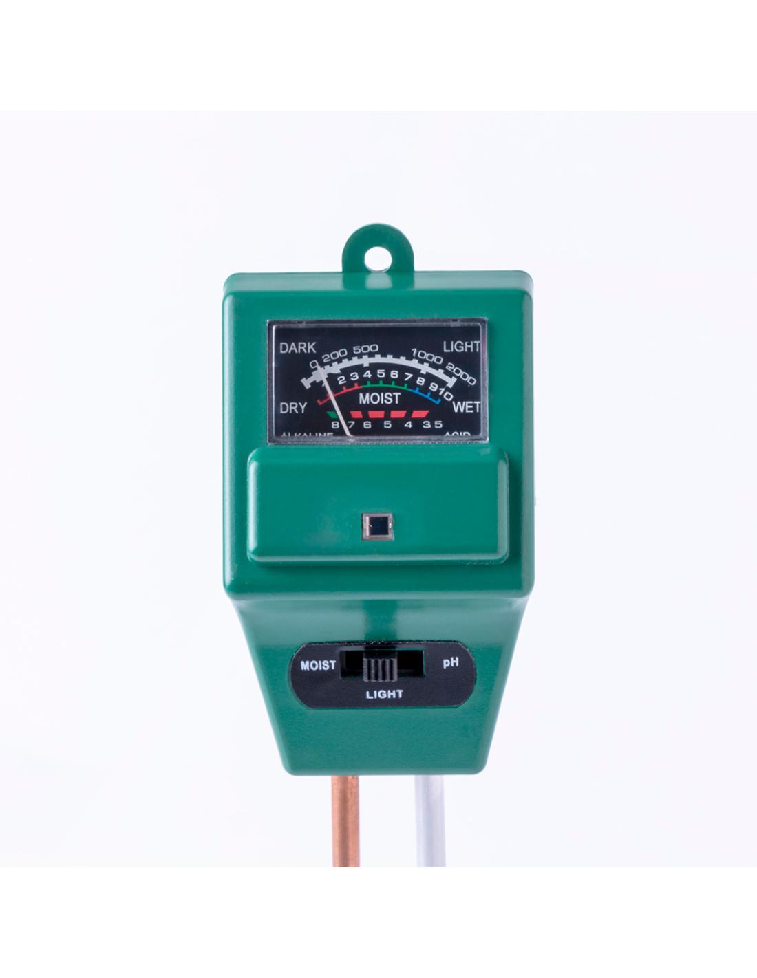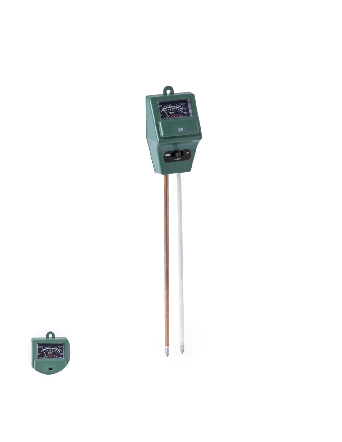 Higrómetro medidor de suelo 3 en 1, para un mayor control del crecimiento de los cultivos o plantas. Mide la humedad, el pH y la exposición a la luz, pudiendo cambiar de función mediante un botón. Válido para uso exterior e interior, con dos sondas para introducir en la tierra a nivel de las raíces y obtener unos resultados de lectura óptimos. Con instrucciones en español e inglés, presentado individualmente en caja de diseño kraft.