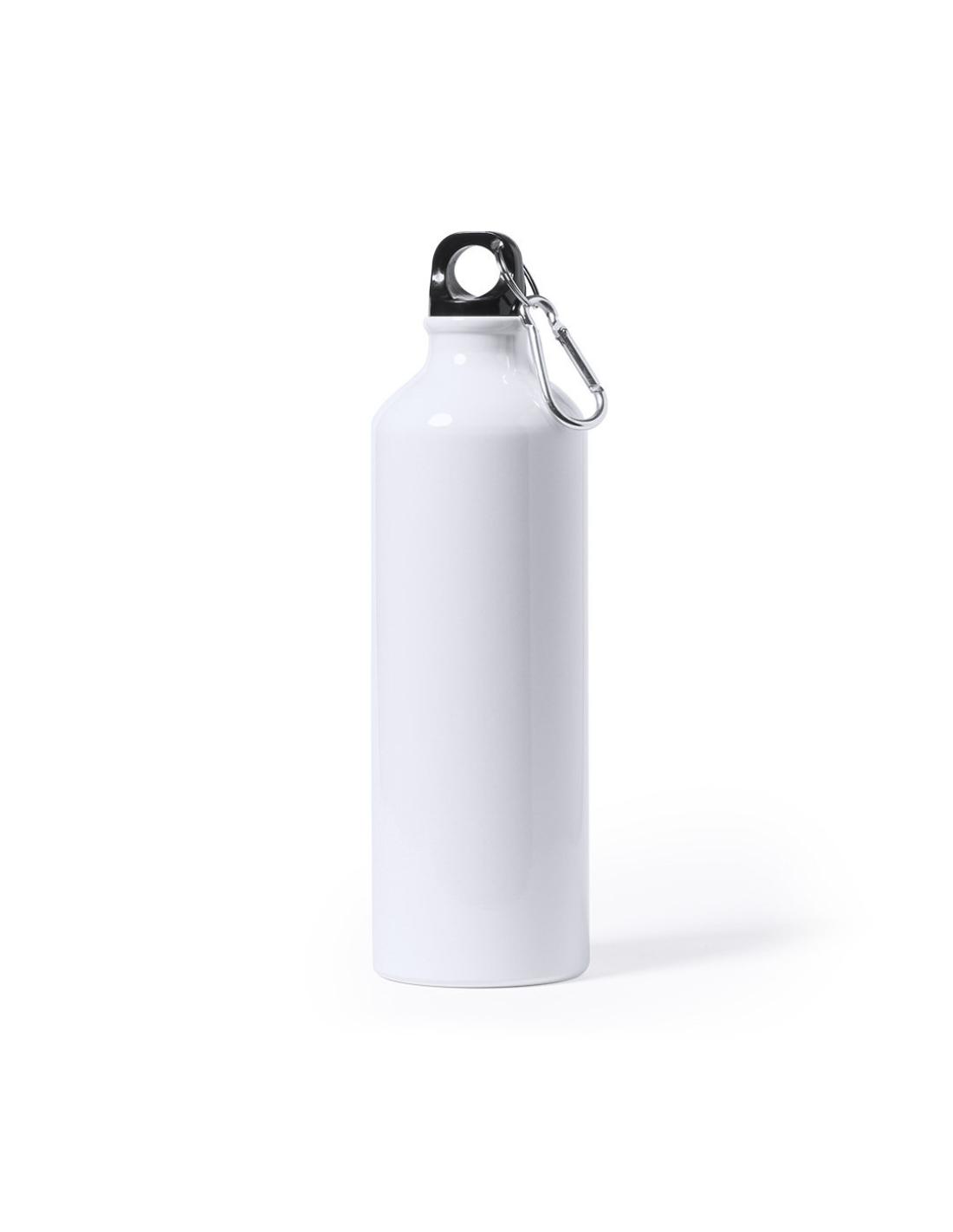 Bidón de aluminio de 800ml de capacidad. Acabado en suave y brillante color blanco, especialmente diseñado para marcaje en sublimación. Con tapón de seguridad a rosca y mosquetón metálico de transporte. Presentado en atractiva caja de diseño.