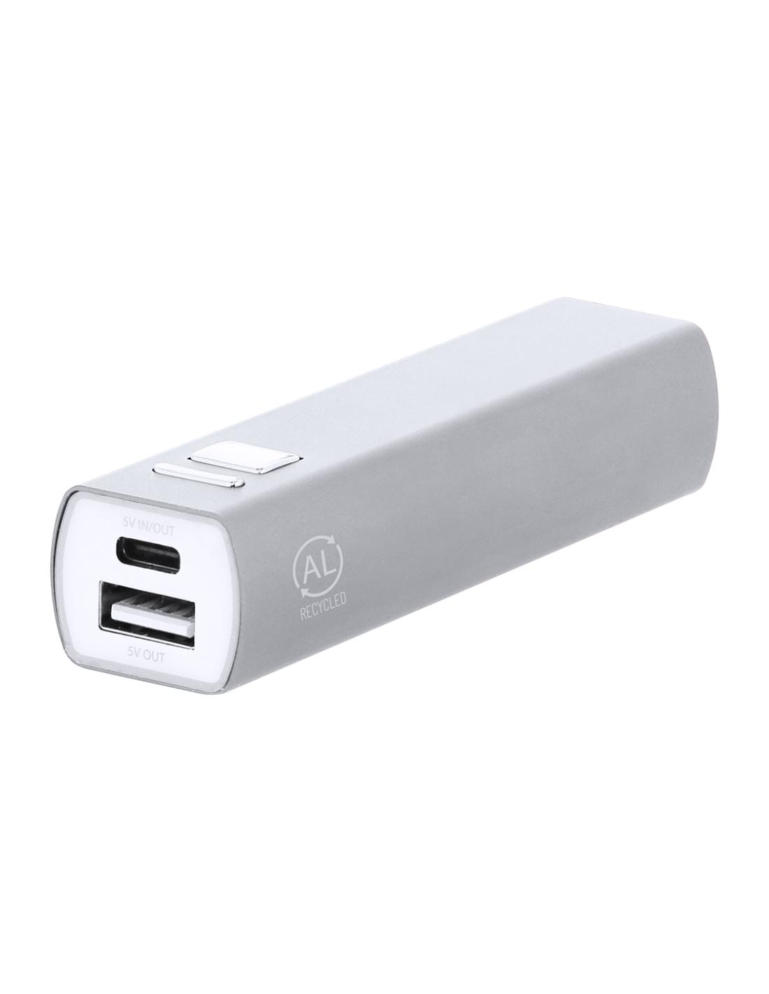 Batería auxiliar externa fabricada en aluminio reciclado, con capacidad de carga de 2600 mAh. Fácil de transportar gracias a su reducido tamaño. Con botón ON/OFF para el control de carga y conectores de entrada/salida Tipo C + salida USB. Incluye luz LED de carga y cable Tipo C. Disponible en variada gama de colores.Las capacidades mostradas en todas nuestras baterías auxiliares externas son reales, incorporando todas ellas baterías de grado A y no recicladas, con una vida útil de al menos 500 ciclos de carga y según normativa CE.El artículo está fabricado conforme a los estándares RoHS, cumpliendo con los siguientes requisitos de seguridad:Sistema de protección contra sobrecarga del dispositivo. Sistema de protección contra descarga completa que proporciona una mayor durabilidad.Sistema de bloqueo...