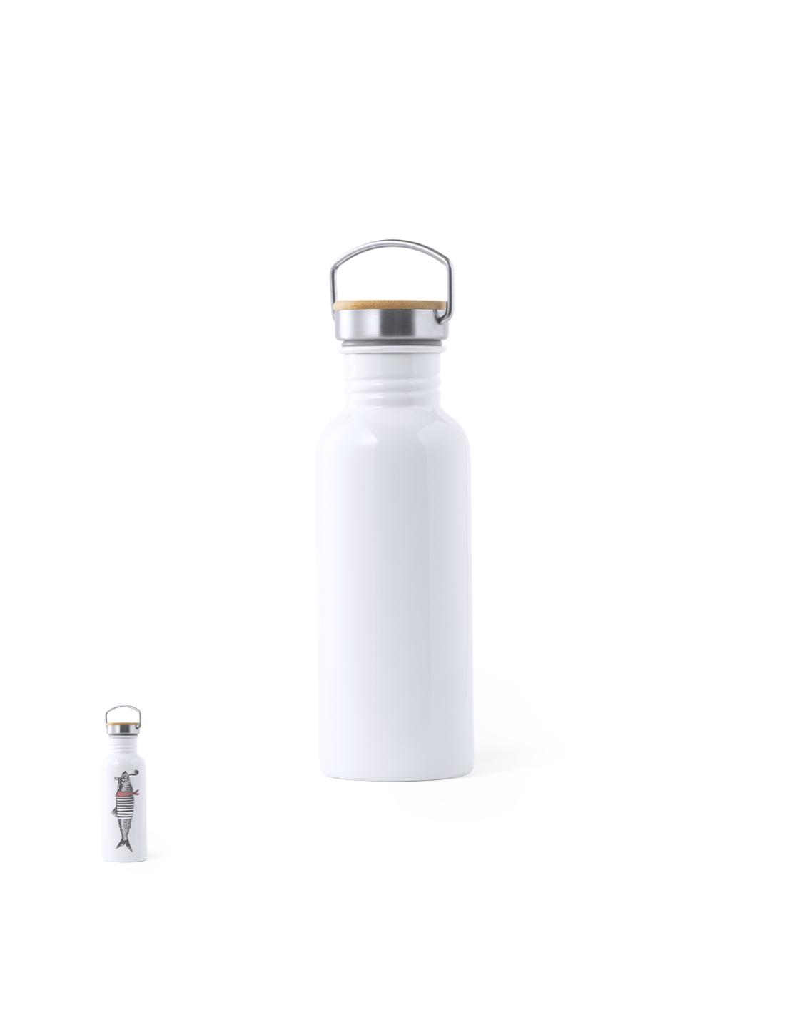 Bidón en acero inox especialmente diseñado para marcaje en sublimación. De estilo retro y 750ml de capacidad. Tapón de seguridad a rosca en acero inox, con detalle en bambú y asa de transporte vintage. Presentado en atractiva caja de diseño.