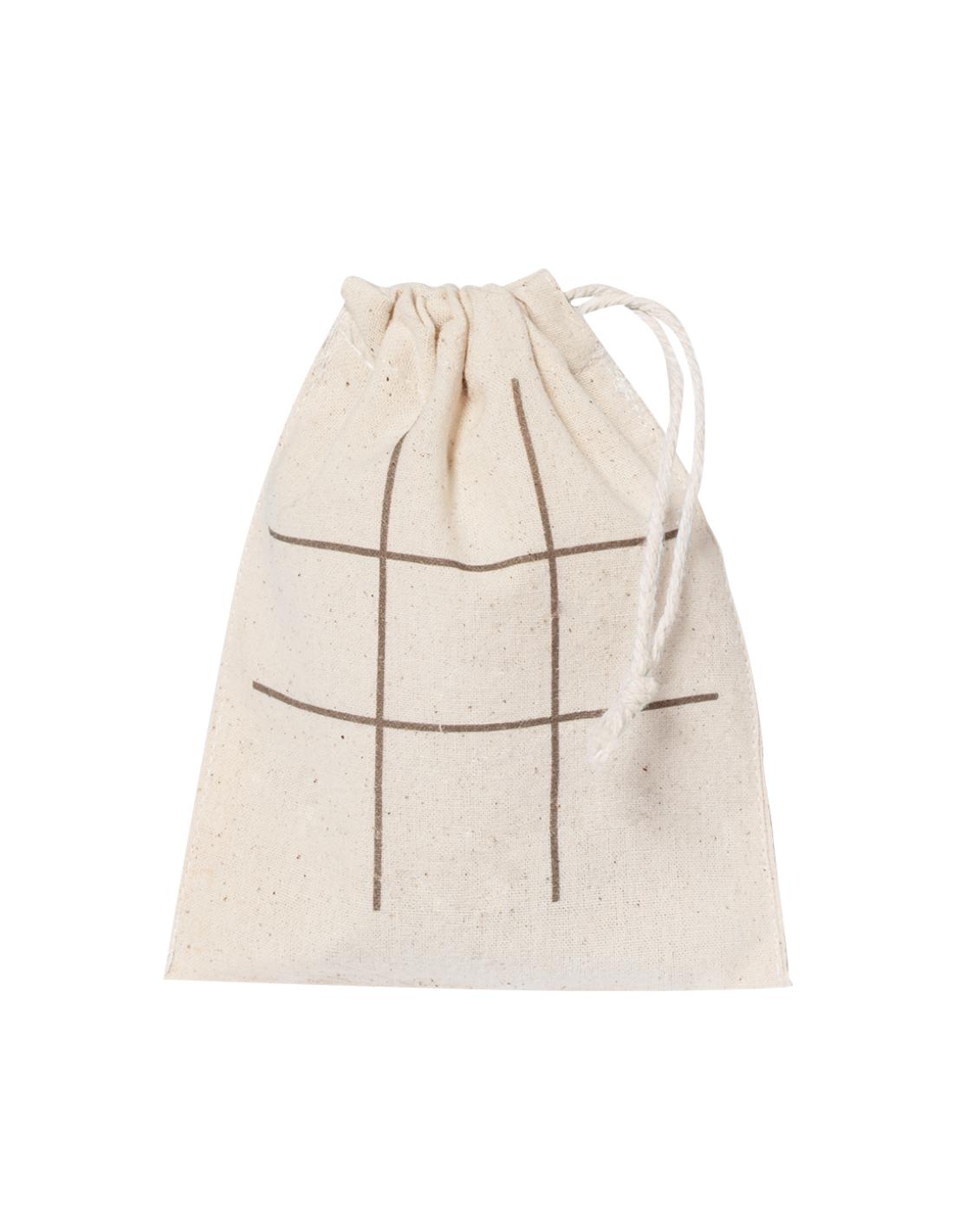 Juego de tres en raya fabricado en corcho natural. Incluye 5 fichas con forma de árbol y 5 fichas con forma de estrella. Presentado en bolsa de algodón con cierre de cordón, facilitando su almacenamiento y convirtiéndose en tablero de juego.Elaborado con elementos vegetales para así fomentar la utilización de materias primas naturales y reducir las emisiones contaminantes.