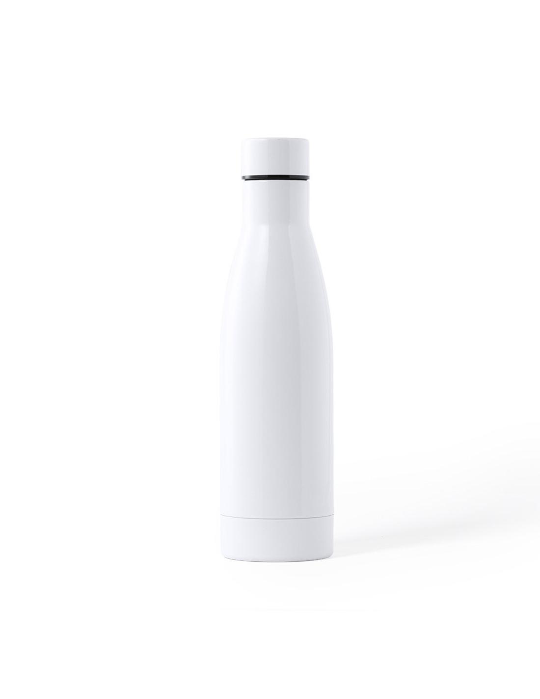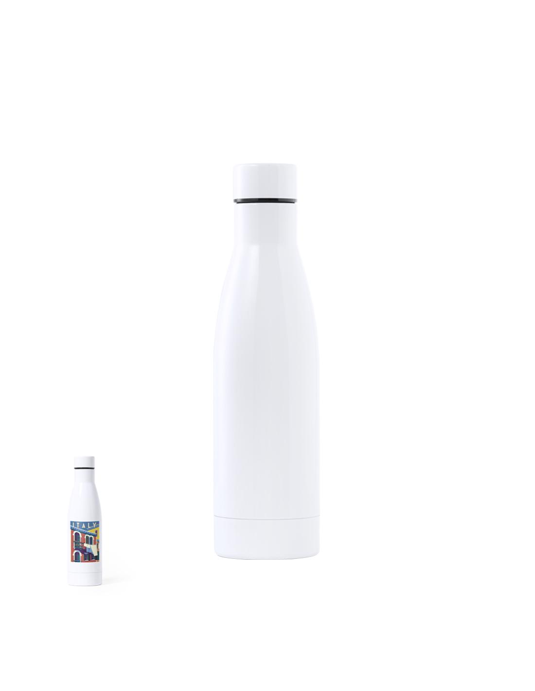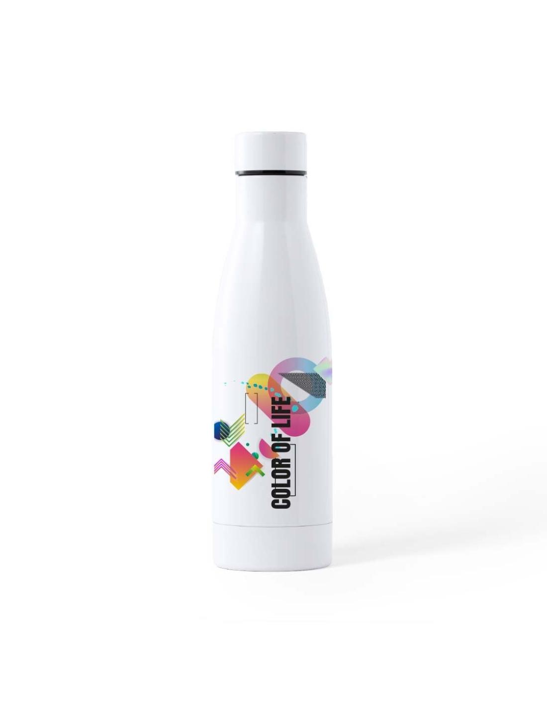 Bidón de acero inox de 700ml de capacidad. Acabado en suave y brillante color blanco, especialmente diseñado para marcaje en sublimación. Con tapón de seguridad en acero inox, libre de BPA. Presentado en atractiva caja de diseño.