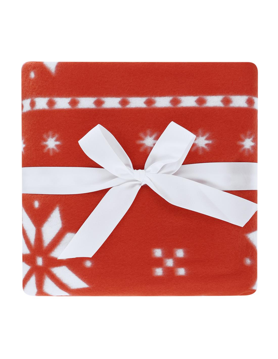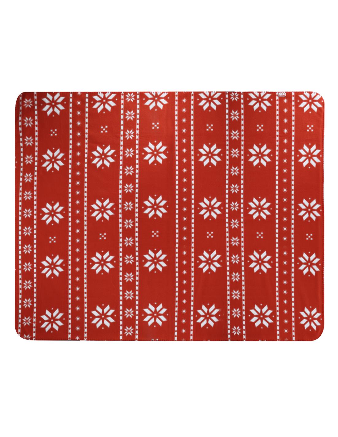 Manta de 130x160 cm fabricada en suave poliéster RPET. Original diseño de navidad de color rojo con motivos navideños en blanco. En suave y cálido material polar fleece de 200g/m2 con tratamiento anti-pilling. Distintivo RPET en etiqueta. Presentada en cartón de color blanco, con lazo a juego. El material RPET se elabora a partir de plástico reciclado, para así fomentar la reutilización de residuos plásticos y ayudar a la sostenibilidad del planeta.
