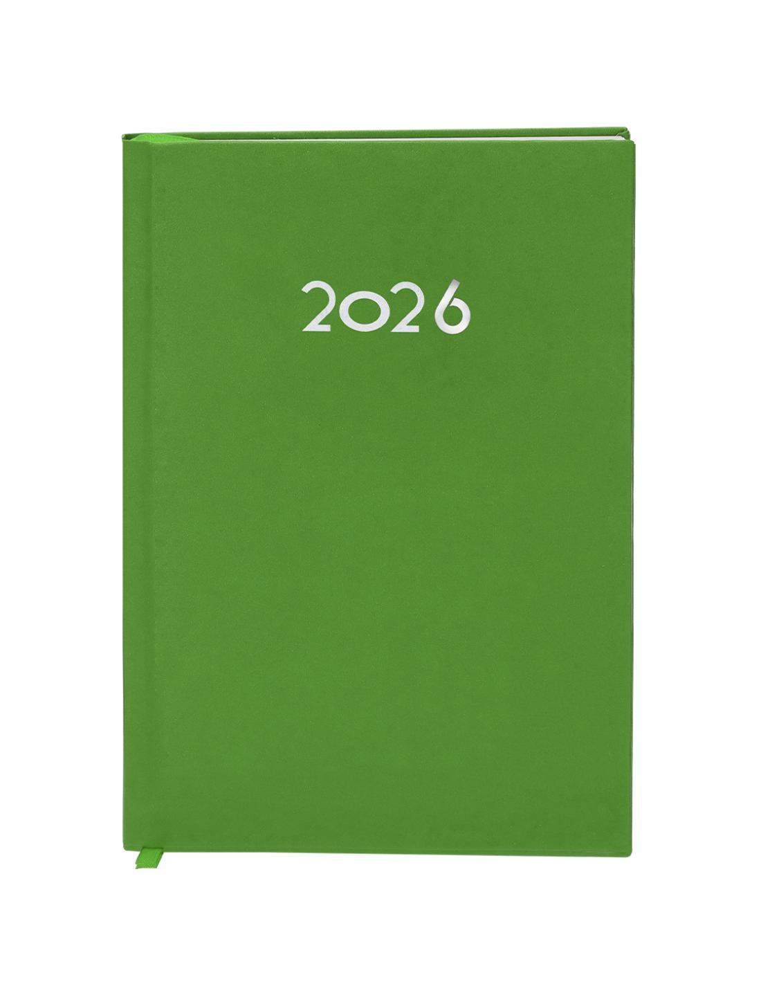 Agenda de tamaño A5 acabada en suave PU. Con cubiertas rígidas y acolchadas. Incluye caja kraft de presentación.Diseño página día y marcapáginas de tela. En 2 idiomas: castellano e inglés.