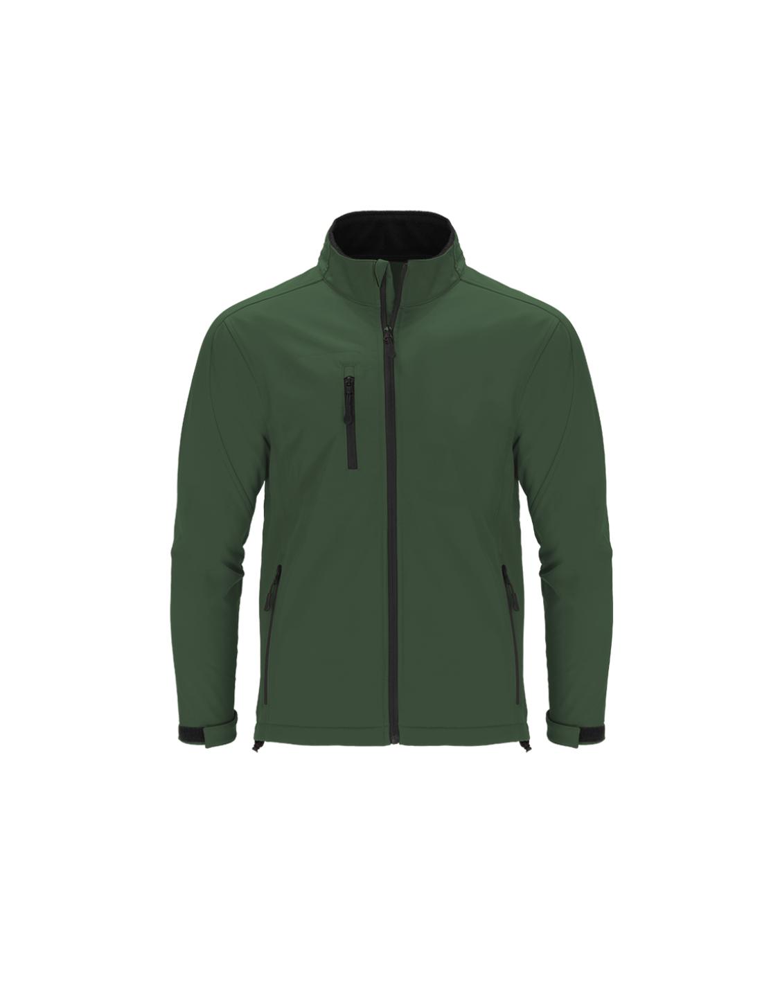 Chaqueta Soft Shell RPET confeccionada en 3 capas, de 340 g/m2. Con membrana de 8000mm, impermeable y transpirable. Exterior en Soft Shell e interior en tejido polar microfleece en color negro. Con bolsillo exterior en pecho derecho y dos bolsillos laterales con cremalleras. Con cremallera central y cremalleras invertidas en bolsillos, incluyendo tiradores de cordón en color negro. Mangas ranglán con sistema de ajuste de velcro en el puño en color negro. Cuenta con protector de barbilla a juego y cintura ajustable, con cordón elástico y tope. Distintivo RPET en el ribete de la prenda.
