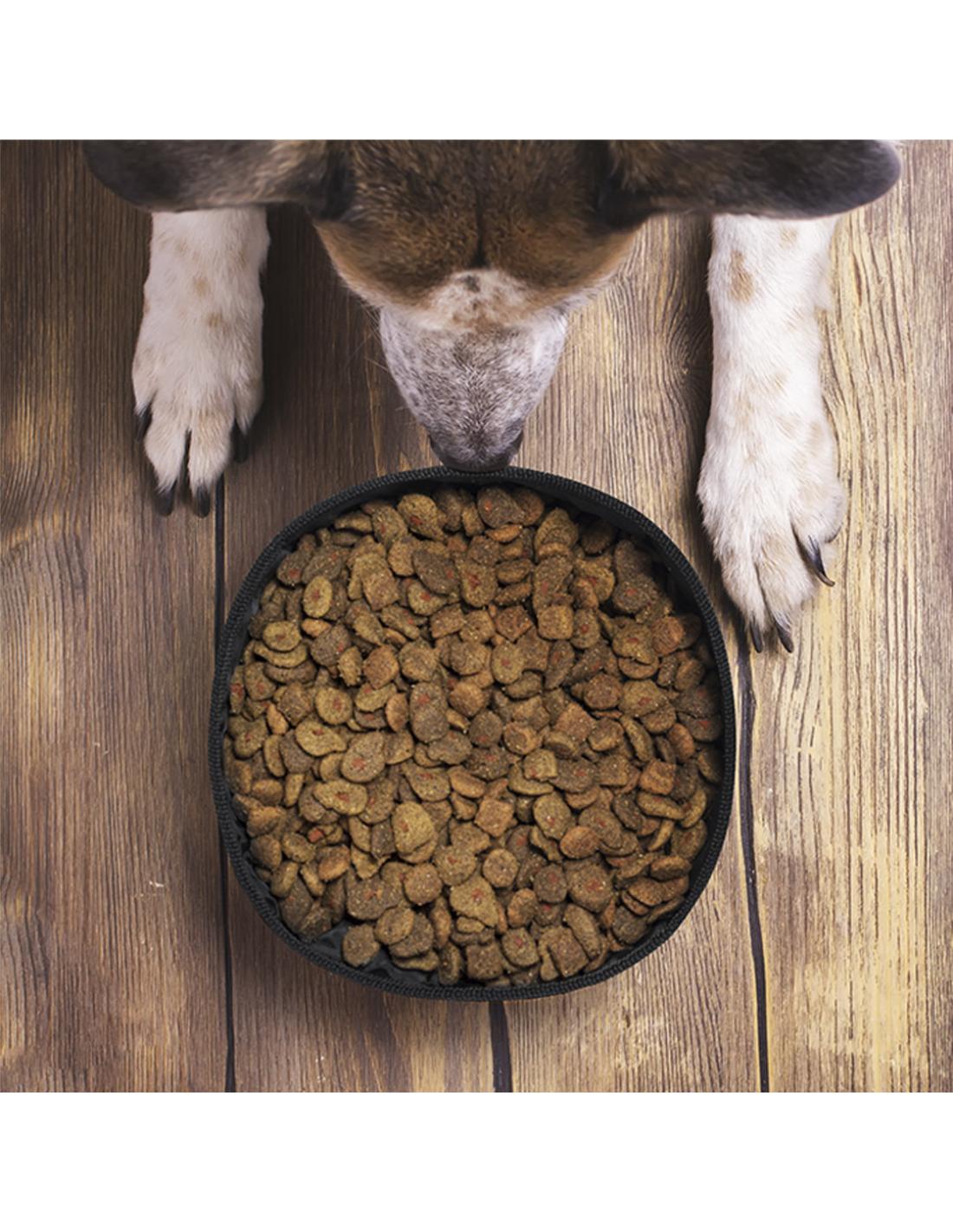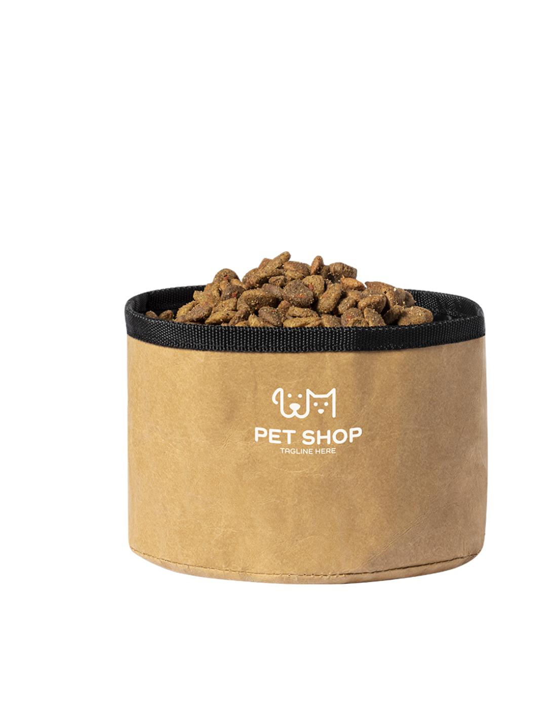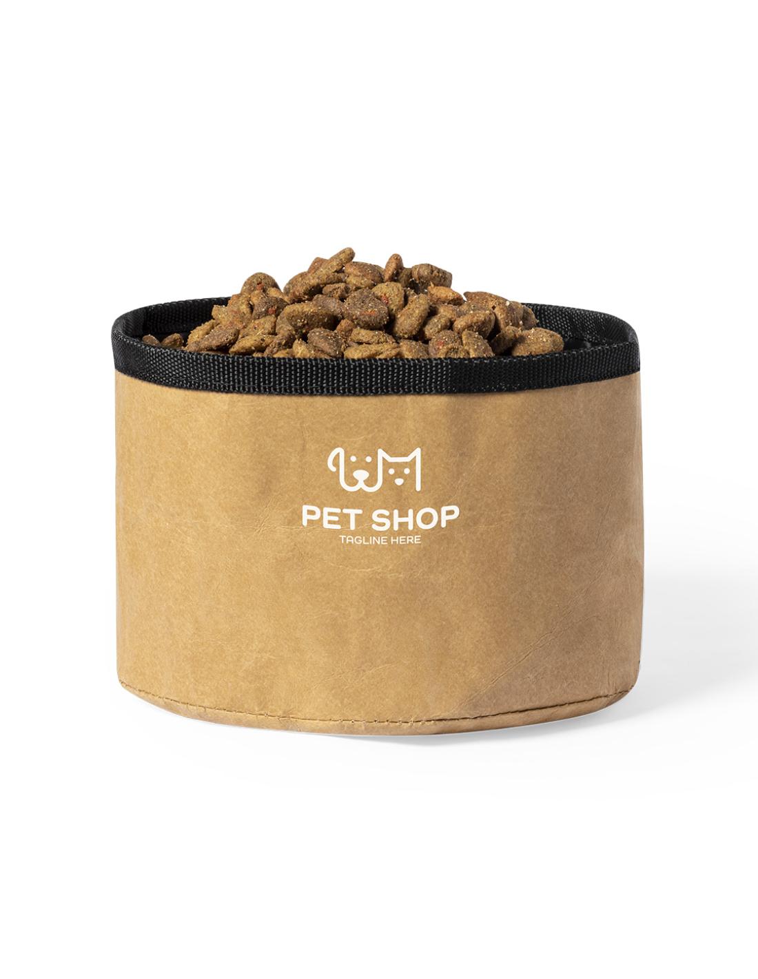 Bowl plegable para mascotas de 1,3l de capacidad, con exterior en resistente papel reciclado laminado de 270g/m2. Interior en poliéster RPET, elaborado a partir de plástico reciclado, para así fomentar la reutilización de residuos plásticos y ayudar a la sostenibilidad del planeta. Apto para sólidos y líquidos.