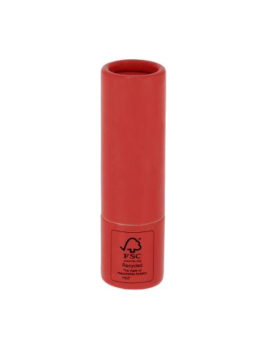 Bálsamo labial fabricado en cartón reciclado con certificado FSC. Aroma vainilla. Protección SPF15. Dermatológicamente testado. Distintivo FSC sobre el envase.