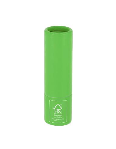 Bálsamo labial fabricado en cartón reciclado con certificado FSC. Aroma vainilla. Protección SPF15. Dermatológicamente testado. Distintivo FSC sobre el envase.