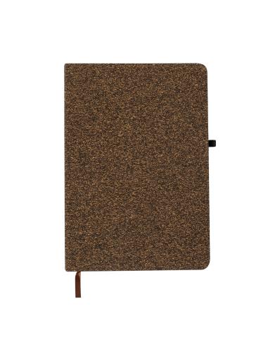 Bloc de notas fabricada en combinación de fibra de café y corcho. Con tapas rígidas y 80 hojas kraft recicladas con disposición a una raya. Incluye marcapáginas a juego y soporte elástico para bolígrafo. Con distintivo fibra de café en contraportada.La fibra de café es una solución circular que se obtiene de la utilización de los residuos producidos en la obtención del café. Una alternativa sostenible que favorece la reducción del uso de plásticos, ahorrando energía en su proceso de fabricación y contribuyendo al cuidado del medio ambiente.