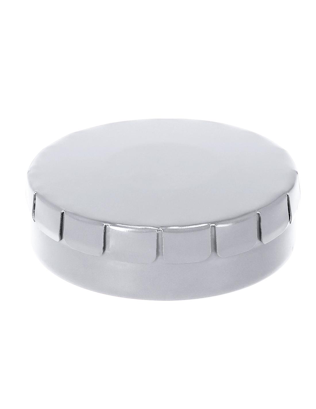 Dispensador de caramelos de menta sin azúcar de 12 gr. En caja de metal con tapadera a presión.