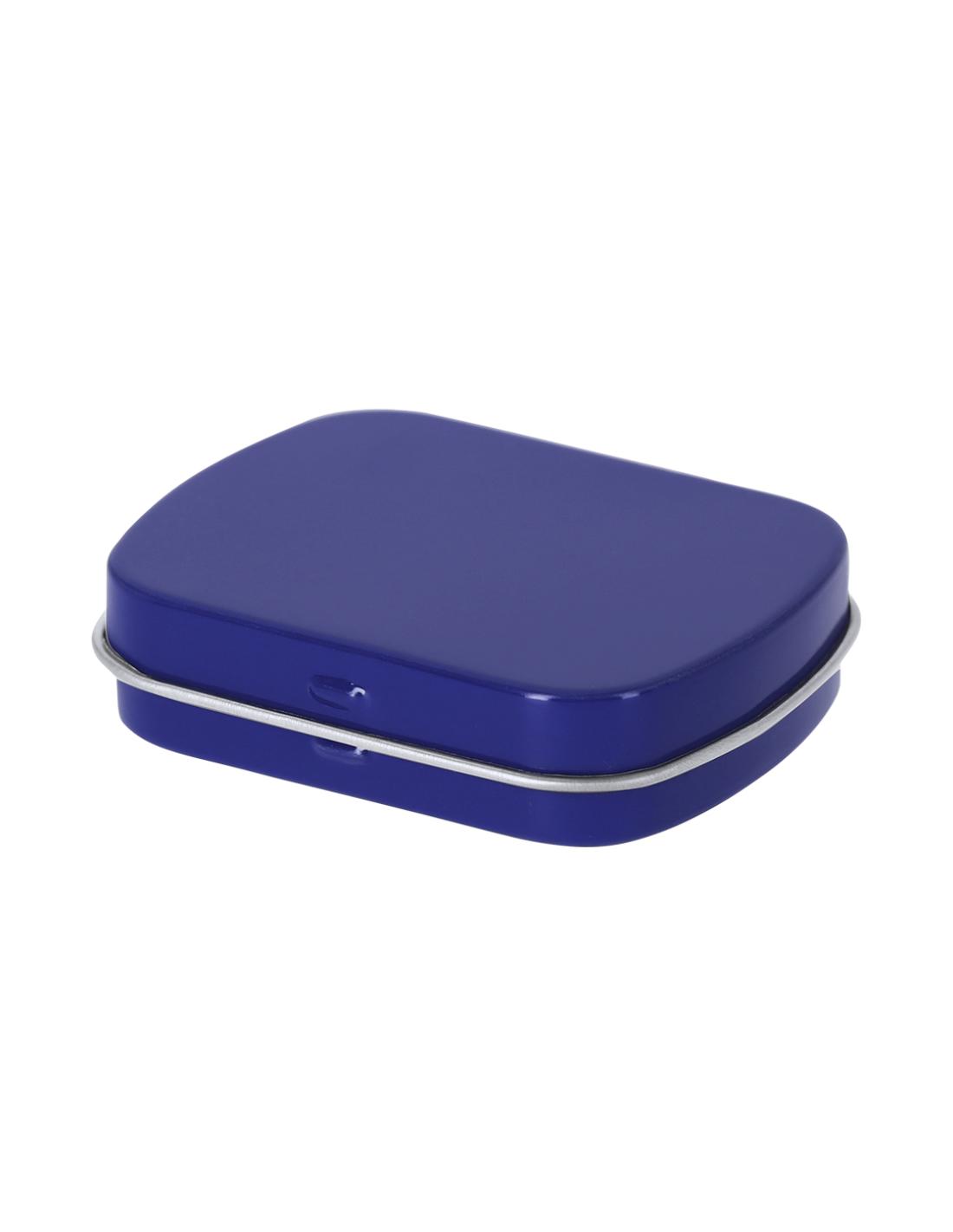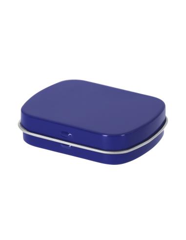 Dispensador de caramelos de menta sin azúcar de 23 gr. En caja de metal con sistema de apertura de bisagra.