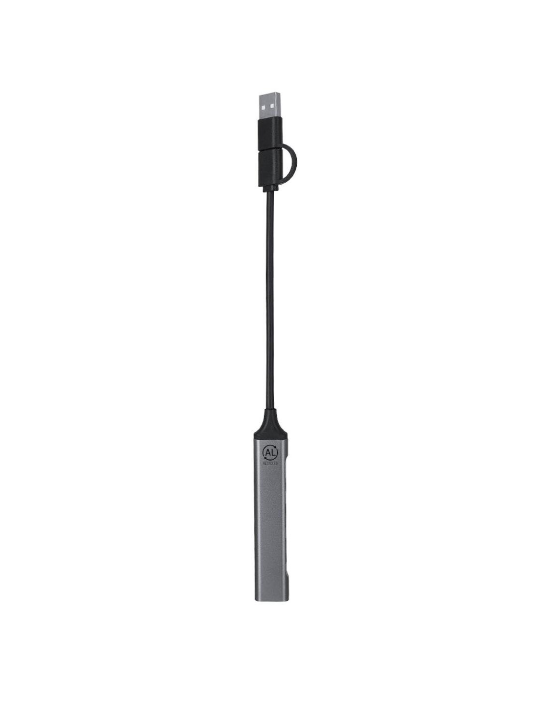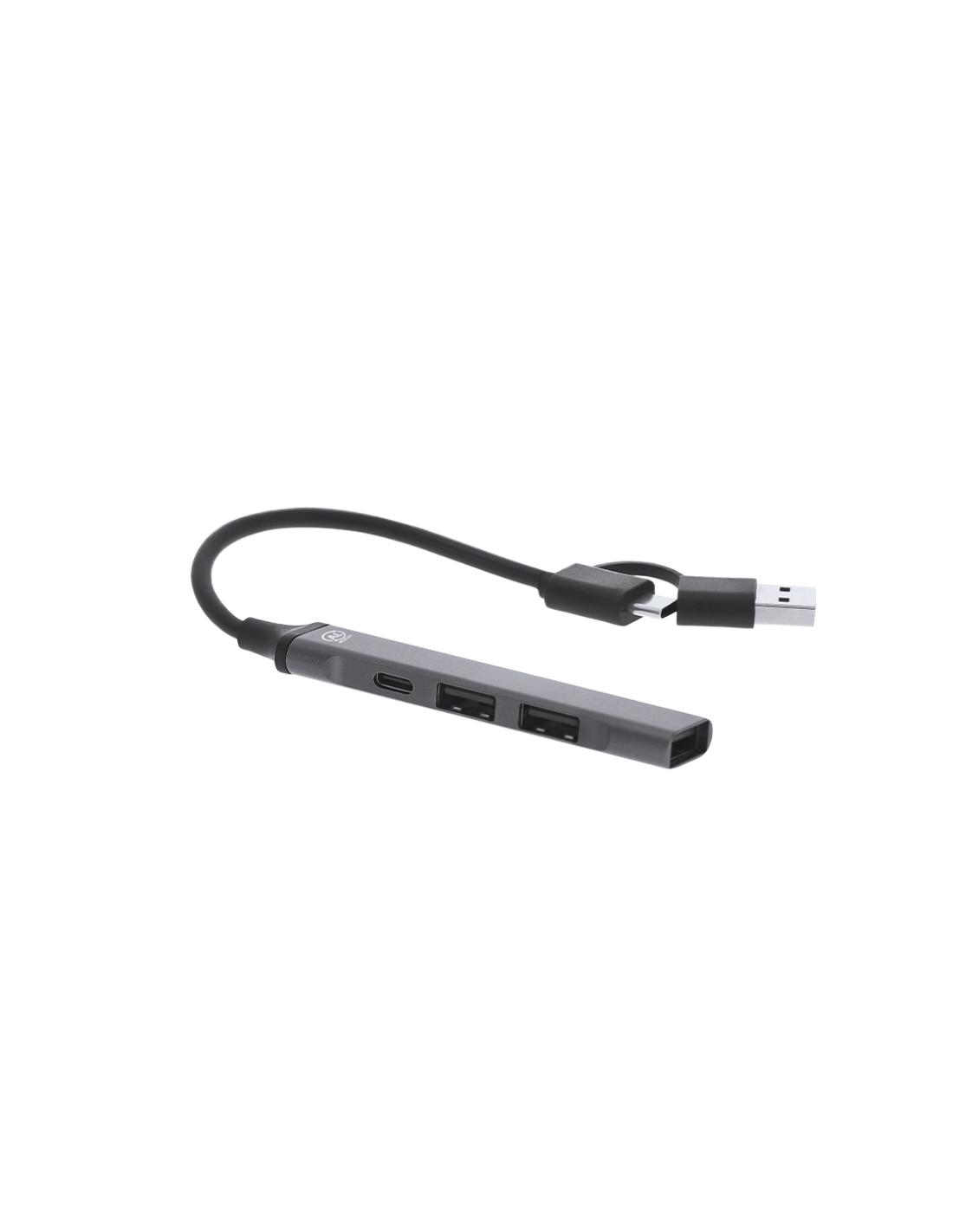 Puerto USB fabricado en Aluminio Reciclado. Con conexión dual USB/Tipo C y 4 puertos: 1 conexión Tipo C 3.0 y 3 puertos USB. Con distintivo Aluminio Reciclado. El aluminio reciclado es un material con posibilidades de reciclaje casi infinitas, sin perder sus propiedades originales y consumiendo menos energía en este proceso. Certificación GRS (Global Recycled Standard / Estándar de Reciclaje Global), que garantiza el origen reciclado del material usado para fabricar el producto.