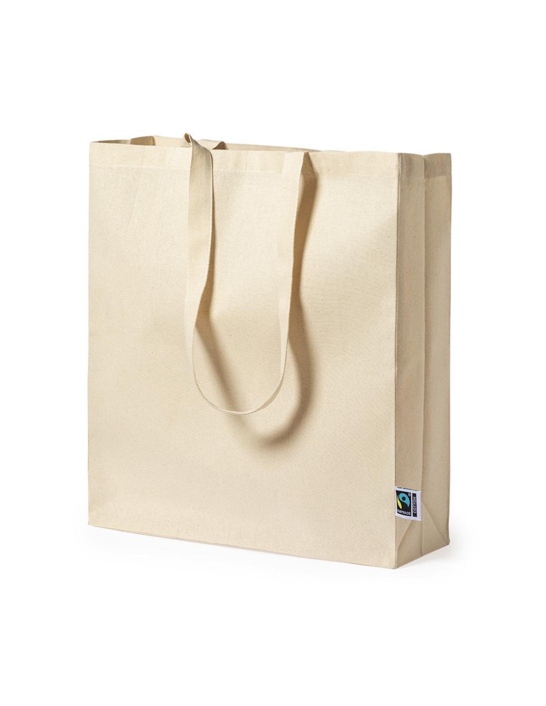 Bolsa de línea nature, fabricada en 100% algodón de 180g/m2 en tono natural. Con certificación Fairtrade (Comercio Justo) un sistema comercial solidario y alternativo al convencional que persigue el desarrollo de los pueblos y la lucha contra la pobreza. De acabado cosido con fuelle, asas largas reforzadas de 70cm y resistencia hasta 7kg de peso. Incluida etiqueta Fairtrade y hangtag distintivo en cartón reciclado.