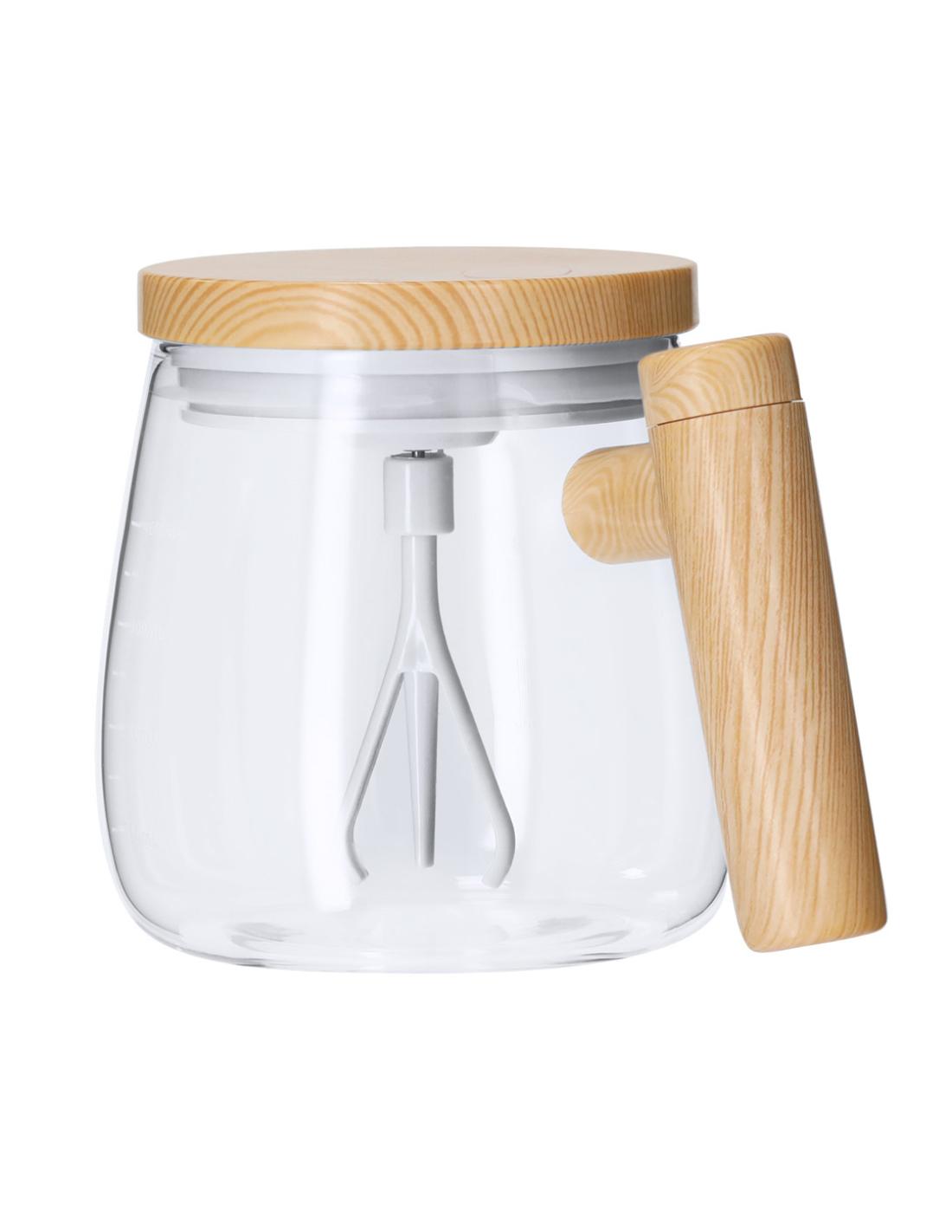 Taza mezcladora fabricada en resistente cristal de borosilicato de 400ml de capacidad. Incluye tapadera con agitador eléctrico alimentado por 2 pilas AAA (no incluidas) y botón de on/off en la parte superior. Con compartimento en mango especial para guardar el agitador, fabricados en ABS imitación madera. Además, tiene escala de medidas impresa en el cuerpo de color blanco.Fabricado en cristal de borosilicato, que ofrece una resistencia y durabilidad excepcionales, alargando su vida útil y pudiendo ser reutilizado infinidad de veces.