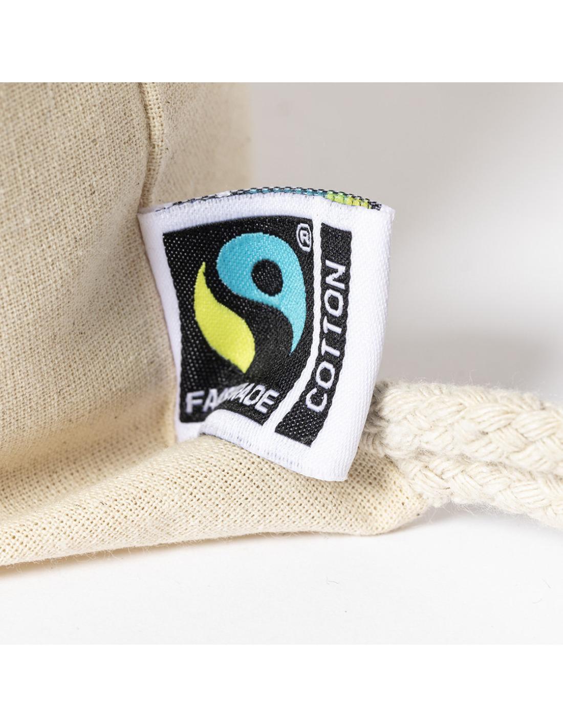Mochila de cuerdas de línea nature, fabricada en 100% algodón de 180g/m2 en tono natural. Con certificación Fairtrade (Comercio Justo) un sistema comercial solidario y alternativo al convencional que persigue el desarrollo de los pueblos y la lucha contra la pobreza. De acabado cosido, cordones de algodón y resistencia hasta 9kg de peso. Incluida etiqueta Fairtrade y hangtag distintivo en cartón reciclado.