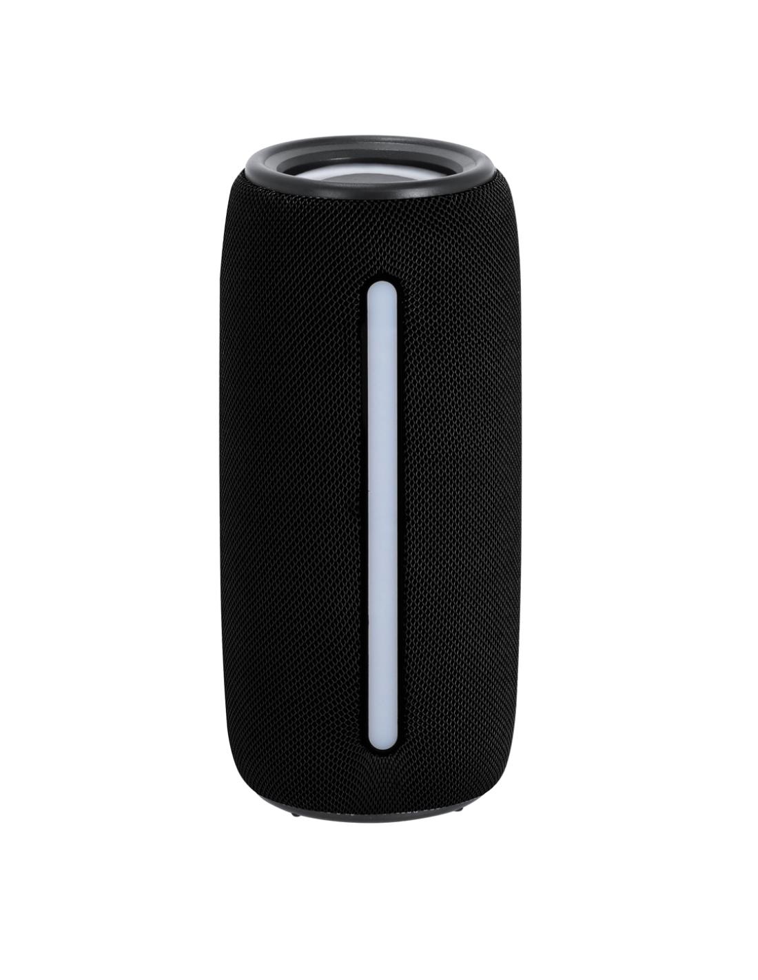 Altavoz estéreo Bluetooth 2x5W con luz multicolor. Fabricado en resistente tejido premium. Con luces LEDs multicolor con 5 posiciones de iluminación. Incluye asa de transporte. Conexión Bluetooth 5.3 con panel de control integrado en el lateral. Incluye función manos libres.