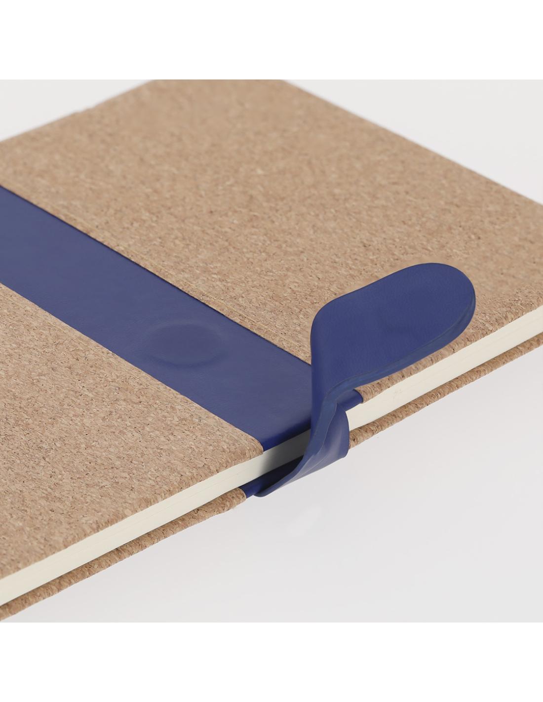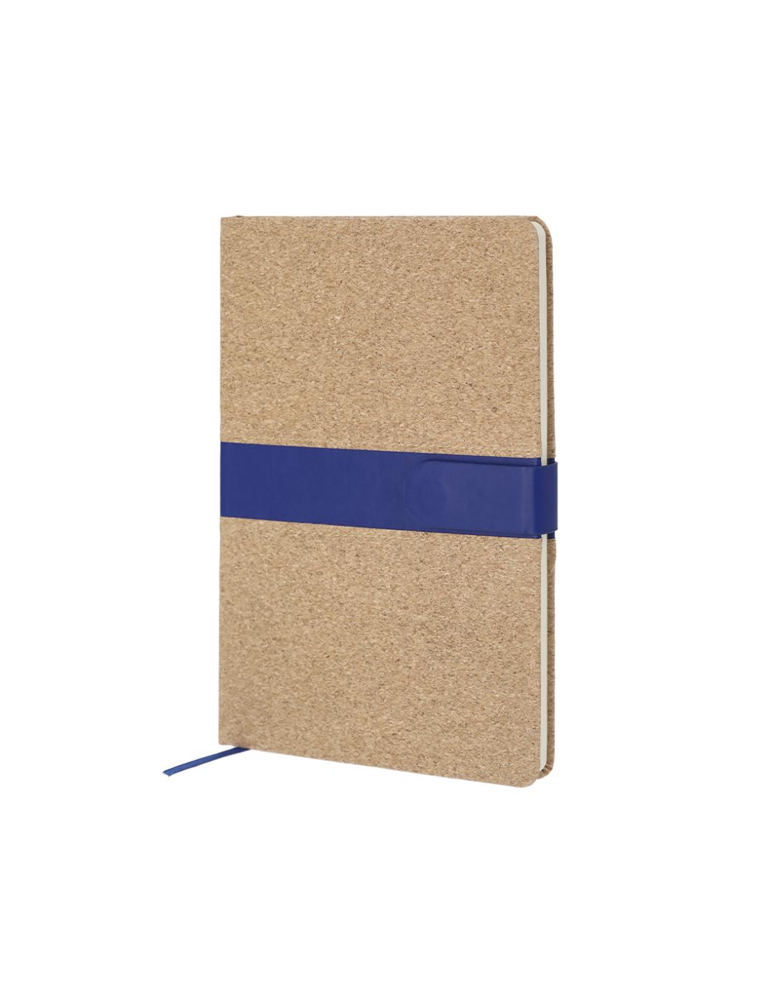 Bloc de notas A5 fabricado en corcho. Elegante diseño con banda central de PU y cierre magnético. Incluye 100 hojas color crema de disposición a una raya y marcapáginas de tela a juego.Elaborado con elementos vegetales para así fomentar la utilización de materias primas naturales y reducir las emisiones contaminantes.
