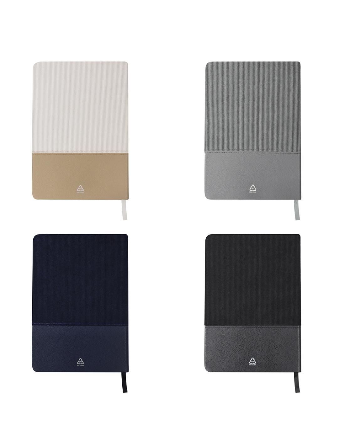 Bloc de notas A5 en suave pana de poliéster y PU Reciclado. Incluye con 80 hojas en color crema, de disposición a una raya y con marcapáginas a juego. Logotipo PU Reciclada en contraportada. La PU Reciclada destaca por su resistencia y elasticidad. Este material reciclado y reciclable es una opción sostenible que rescata las fibras desechadas en los procesos de fabricación, minimizando así el desperdicio de material y contribuyendo a su vez a reducir el impacto ambiental, manteniendo a la vez sus propiedades originales.