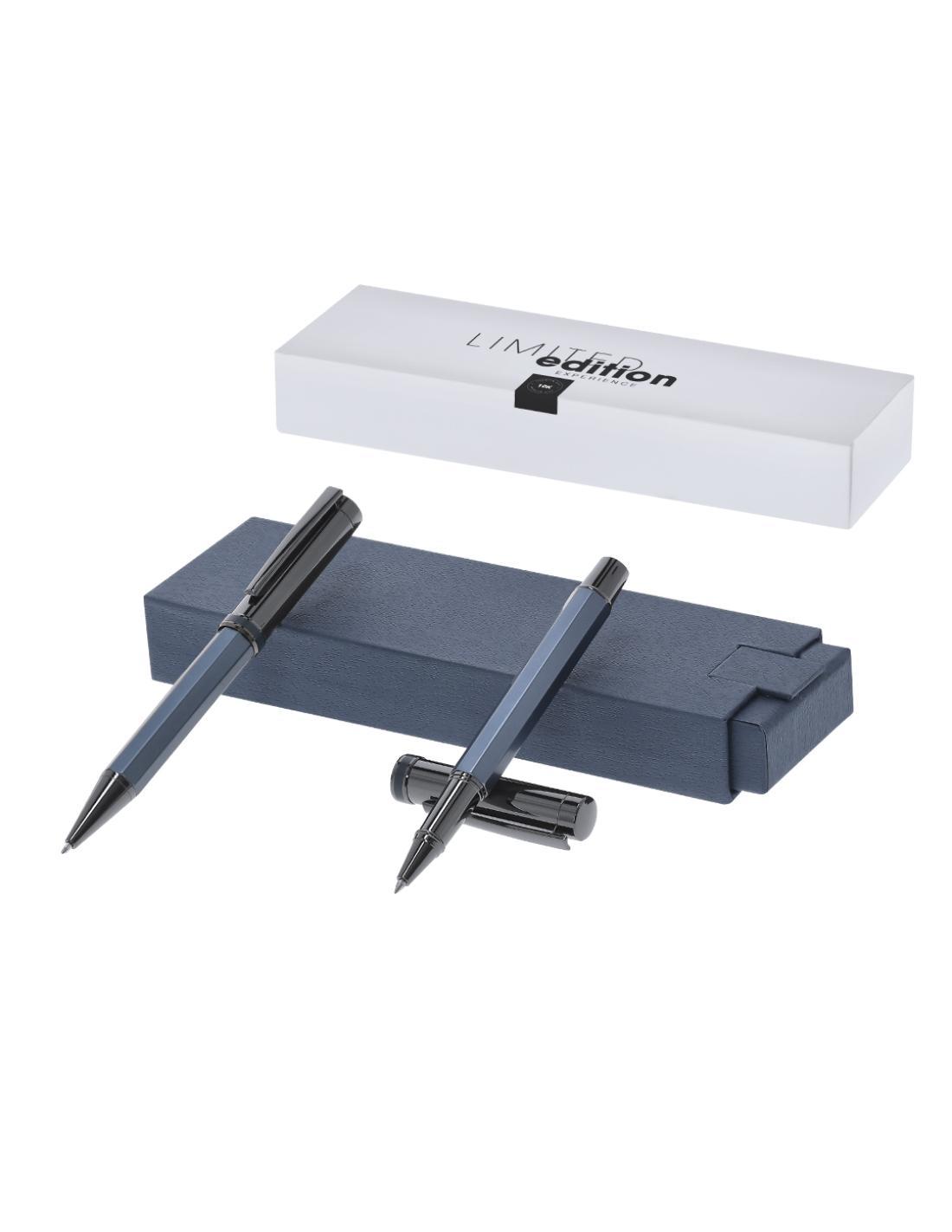 Exclusivo set de bolígrafo y roller de la más alta gama colección Limited Edition. Un complemento moderno, funcional de gran belleza que sobrepasa todas las expectativas. Caracterizado por su elegante y minimalista diseño, así como su calidad premium en resistente y duradero acero inox, en perfecta sintonía con el aluminio. Bolígrafo con sofisticado sistema de apertura giratoria y roller con práctica apertura de capucha. Empuñaduras de diseño hexagonal en colores metalizados mate y parte superior cilíndrica de sofisticado color antracita brillo con clip metálico, de tinta azul y recargables, carga jumbo para roller. De la perfecta combinación entre exclusividad y diseño, nace Limited Edition, una colección especial de ideas promocionales de edidición limitada. Un nuevo concepto, inspirado en la fusión...