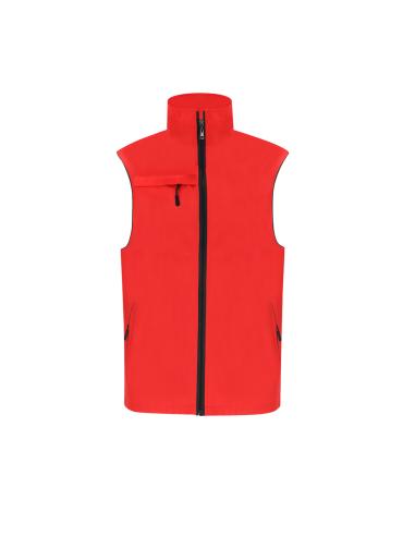 Chaleco Unisex de tejido ligero y transpirable con interior confeccionado en tejido de malla blanco. Con cremallera frontal negra y tirador plateado. Incluye un bolsillo exterior en el pecho derecho y dos bolsillos laterales con cremalleras y tiradores en color negro. Cuenta con media luna en el interior del cuello.