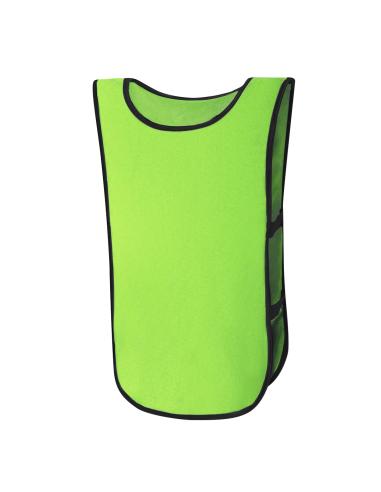Peto deportivo para niños confeccionado en suave y resistente poliéster. Incluye ribetes en color negro y laterales reforzados con dos elásticos negros que aseguran un ajuste perfecto y libertad de movimiento.