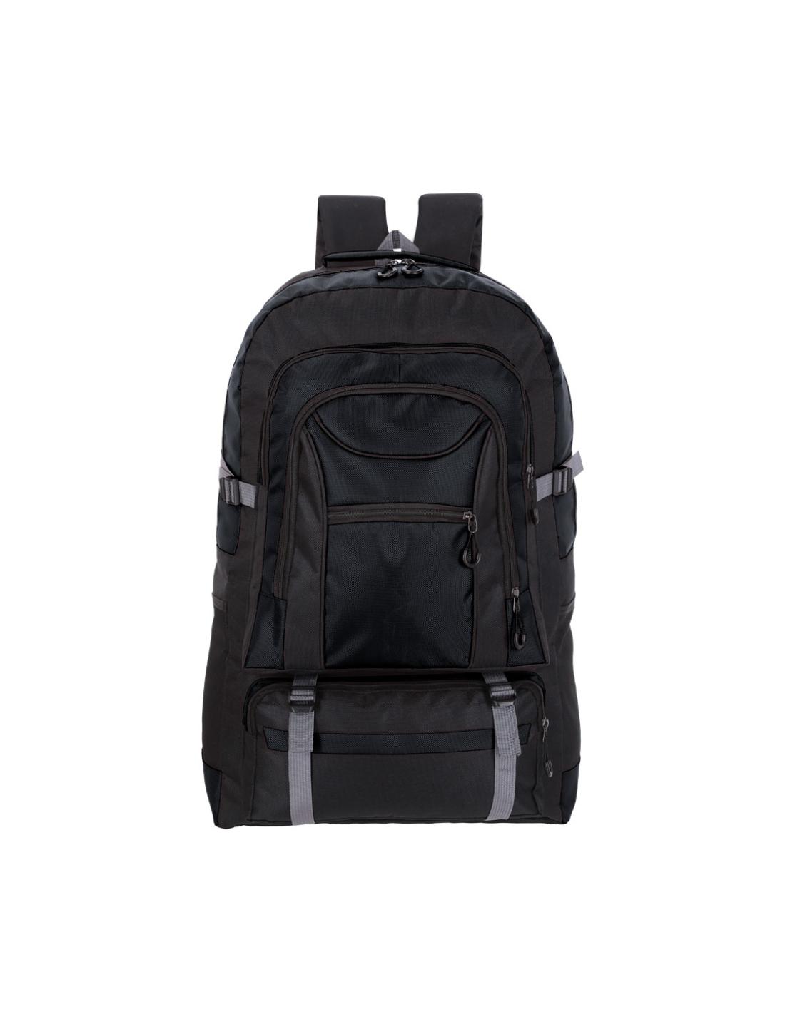 Mochila en resistente poliéster 600D. Con compartimento principal con cierre de cremallera de doble tirador y forro interior, múltiples bolsillos frontales con cierres de cremallera y cómodos tiradores de amplio agarre. Incluye bolsillos laterales de rejilla. Espalda acolchada, cintas de hombro ajustables y acolchadas, así como una correa de cintura ajustable.