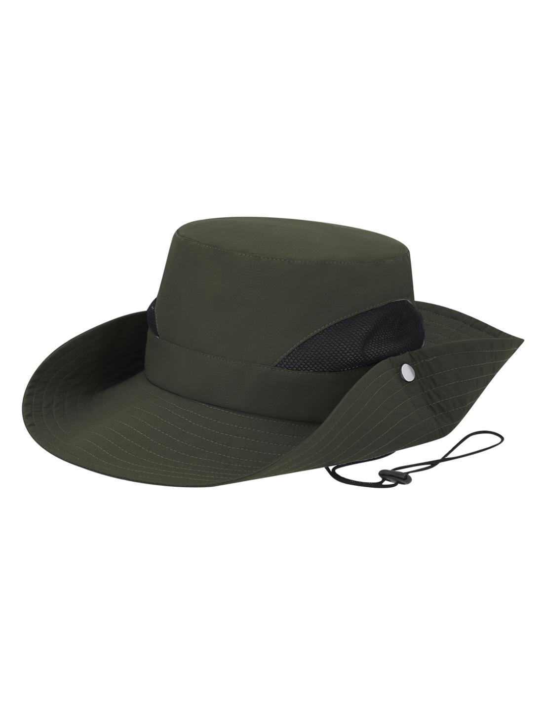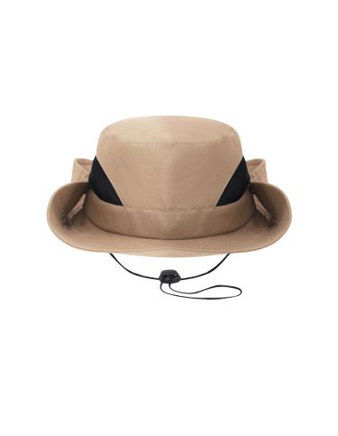 Gorro tipo safari en resistente material poliéster. De confortable interior, con refrescantes rejillas de ventilación laterales fabricadas con tela transpirable. Alas ajustables con cierres de botón metálicos y cordón de transporte ajustable.