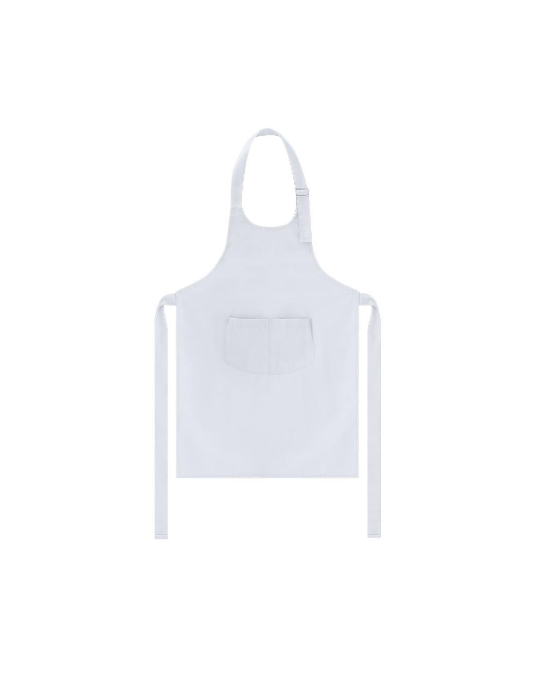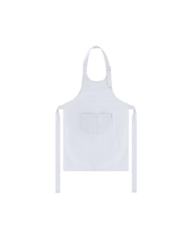 Delantal infantil de alta calidad fabricado en combinación de algodón y poliéster. Con práctico bolsillo doble frontal y cintas de cuello con ajustador cromado. De corte por debajo de la rodilla que proporciona una excelente cobertura.