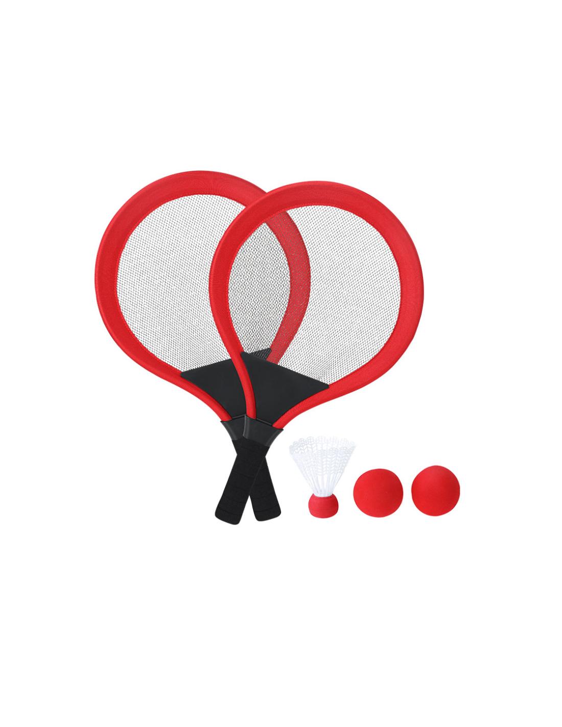 Set de juegos con raquetas. Incluye:- 2 raquetas con mango ergonómico y bordes acolchados, diseñadas para un agarre cómodo y seguro durante el juego.- 2 pelotas a juego, fabricadas en material EVA.- 1 pluma.Ideal para disfrutar al aire libre, ya sea en la playa, en el parque o en el jardín.